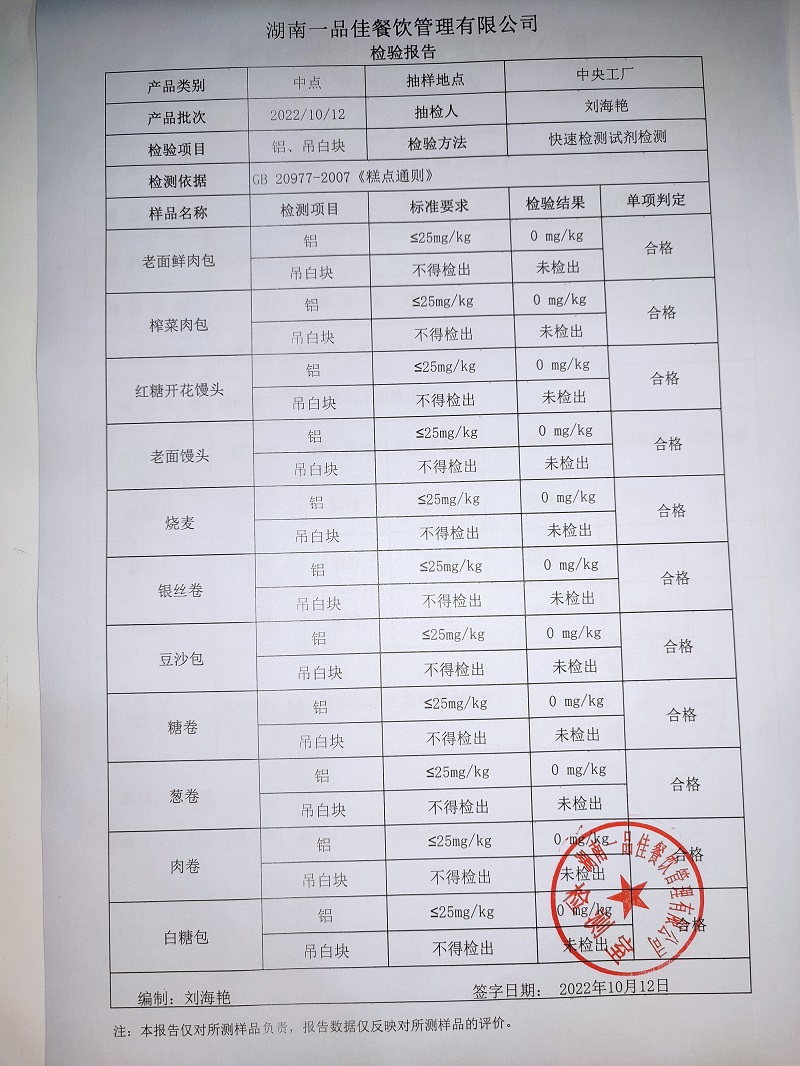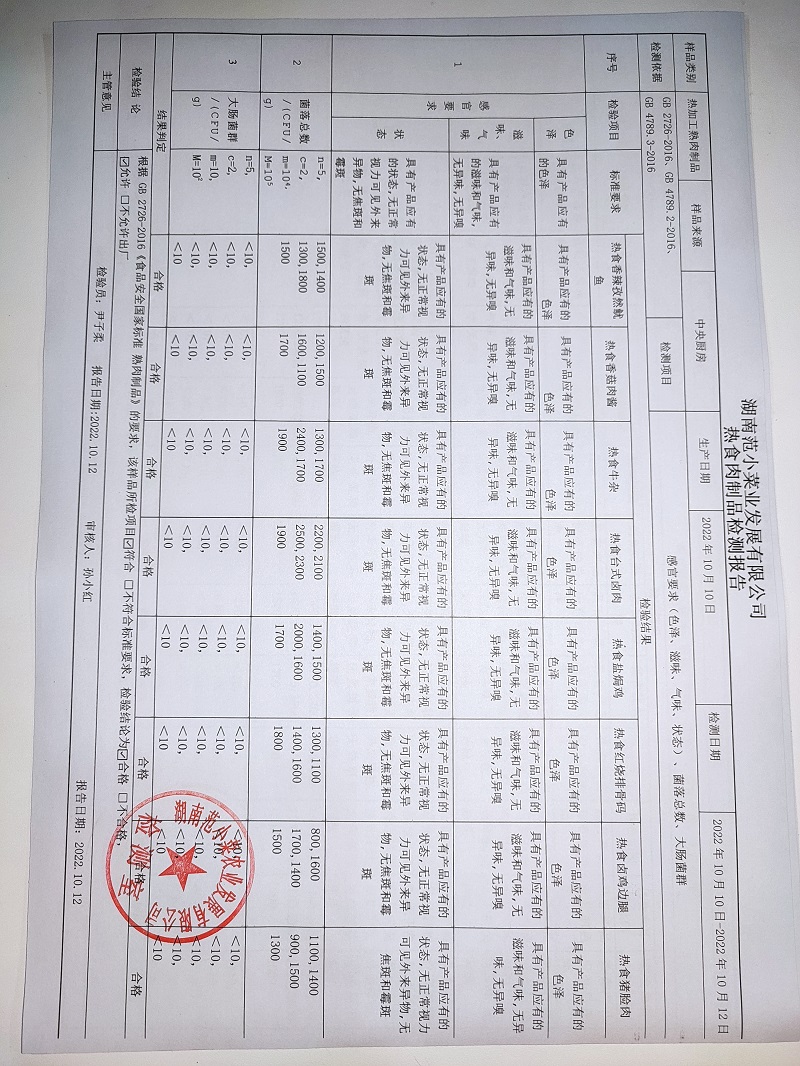 范小菜热食肉制品、调味料、 一品佳中点、水产、农残2022.10.12
