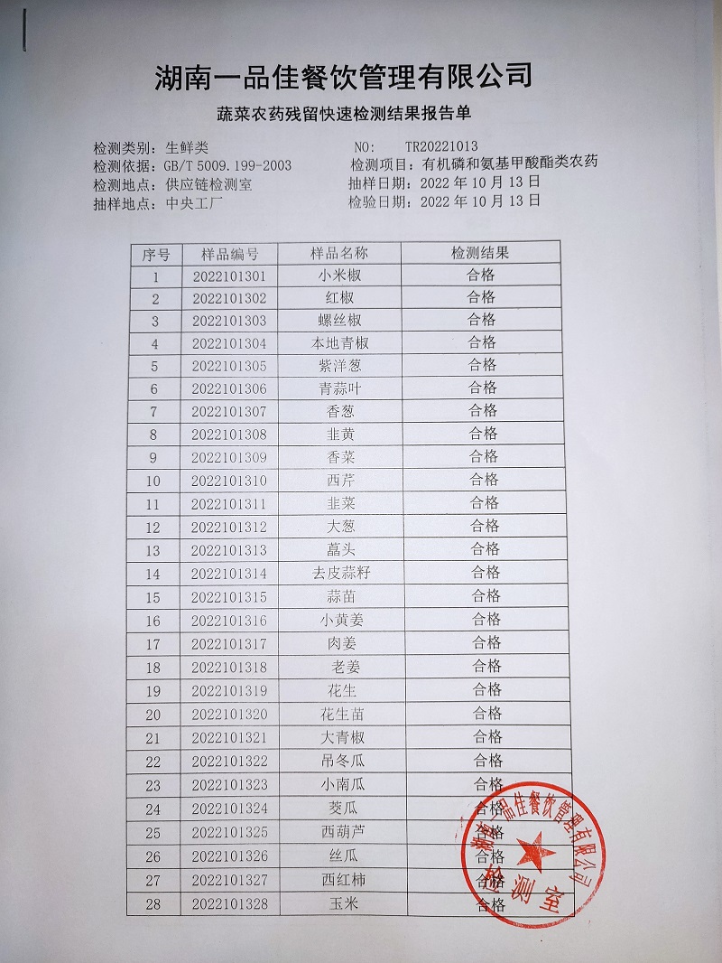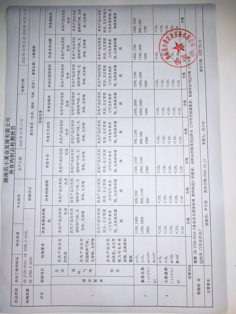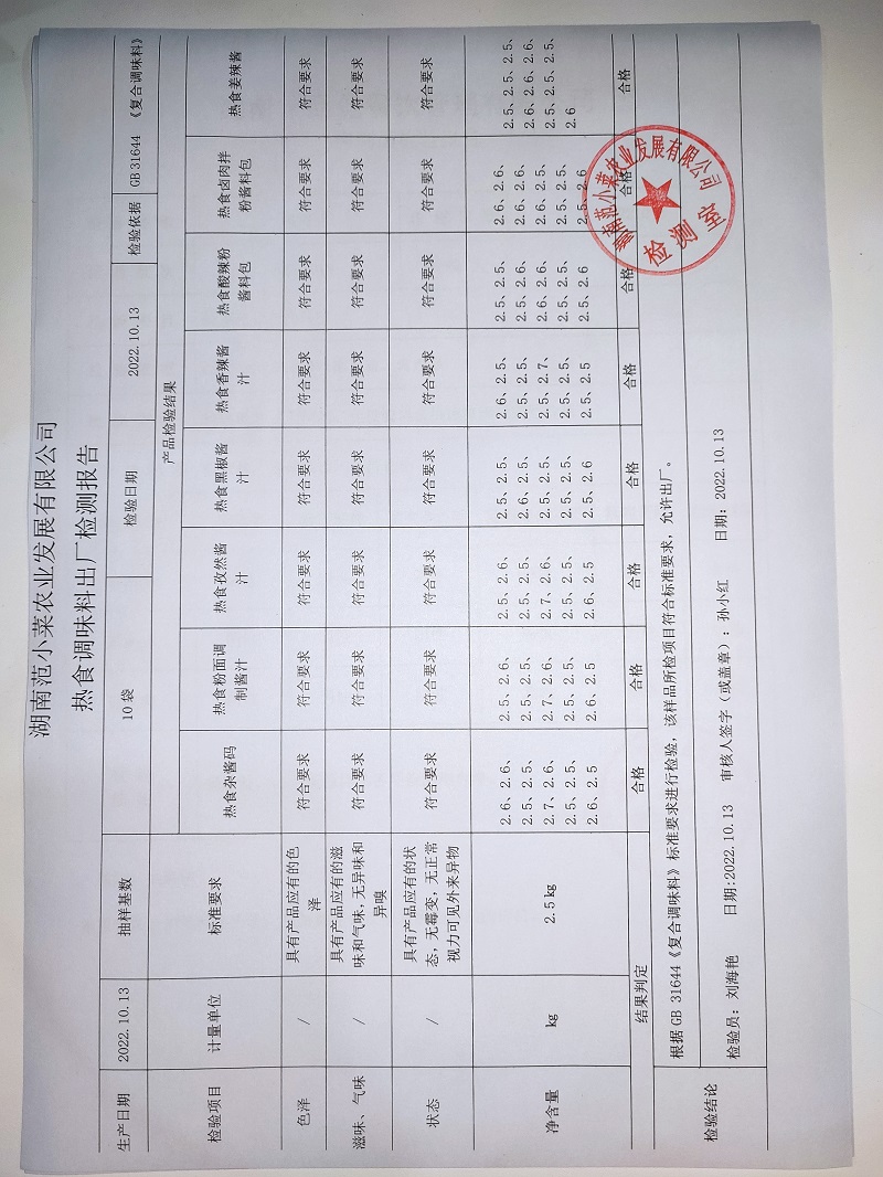 范小菜热食肉制品、调味料、 一品佳中点、水产、农残2022