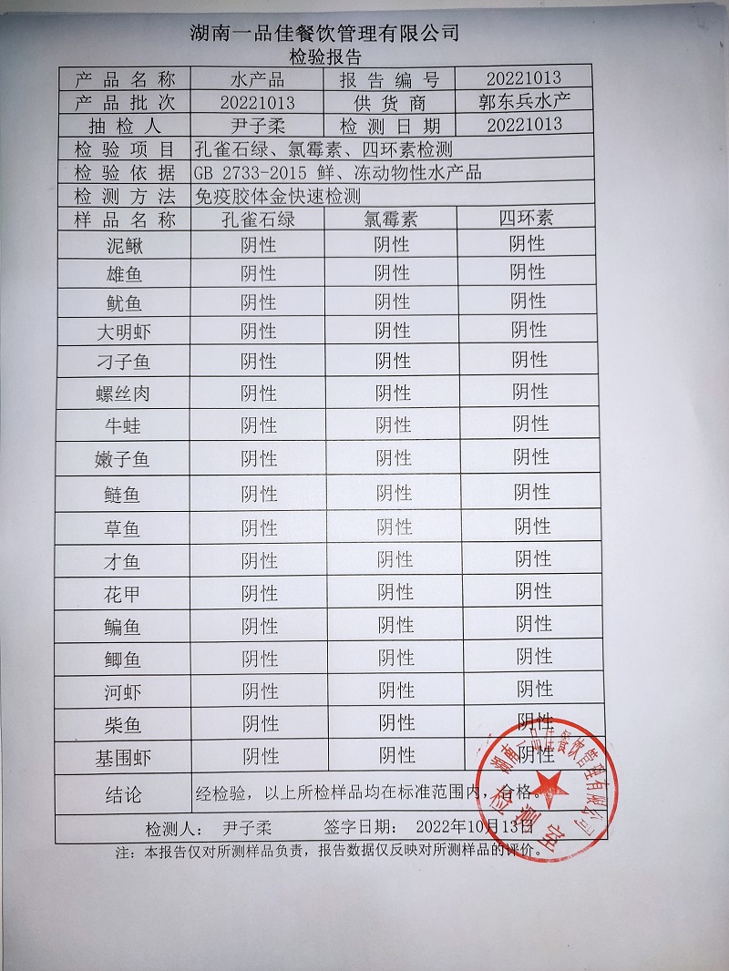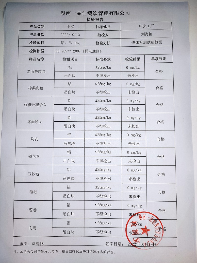 范小菜热食肉制品、调味料、意面、 一品佳中点、水产、农残2022.10.13