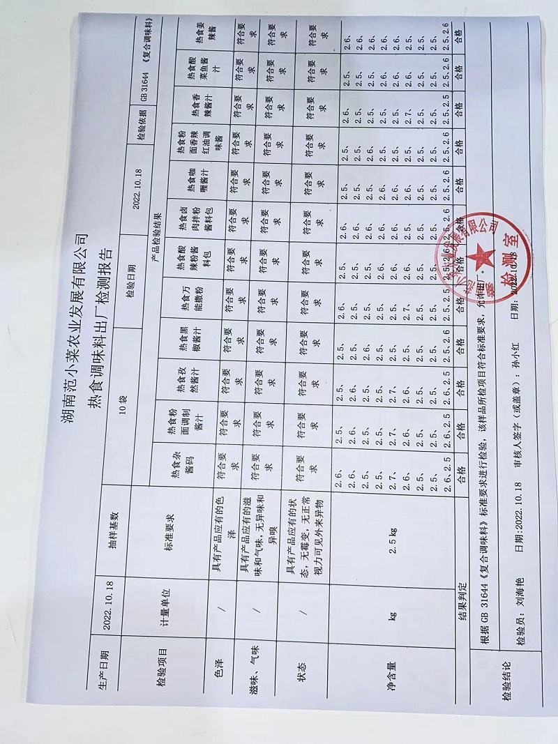 范小菜热食肉制品、热食调味料、意面、一品佳中点、水产、农残检