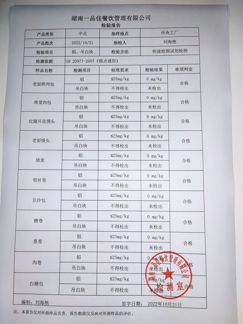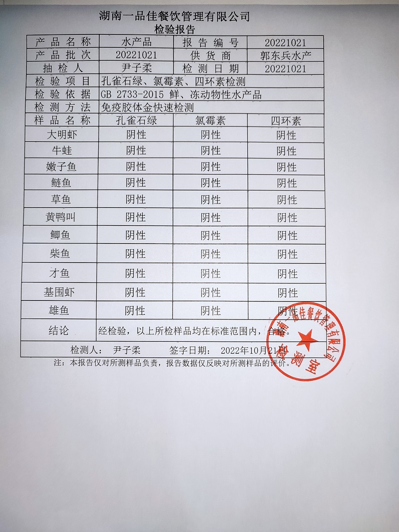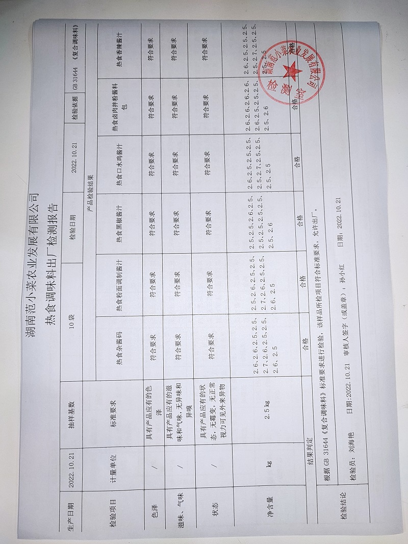 范小菜热食肉制品、调味料、 一品佳中点、水产、农残2022.10.21