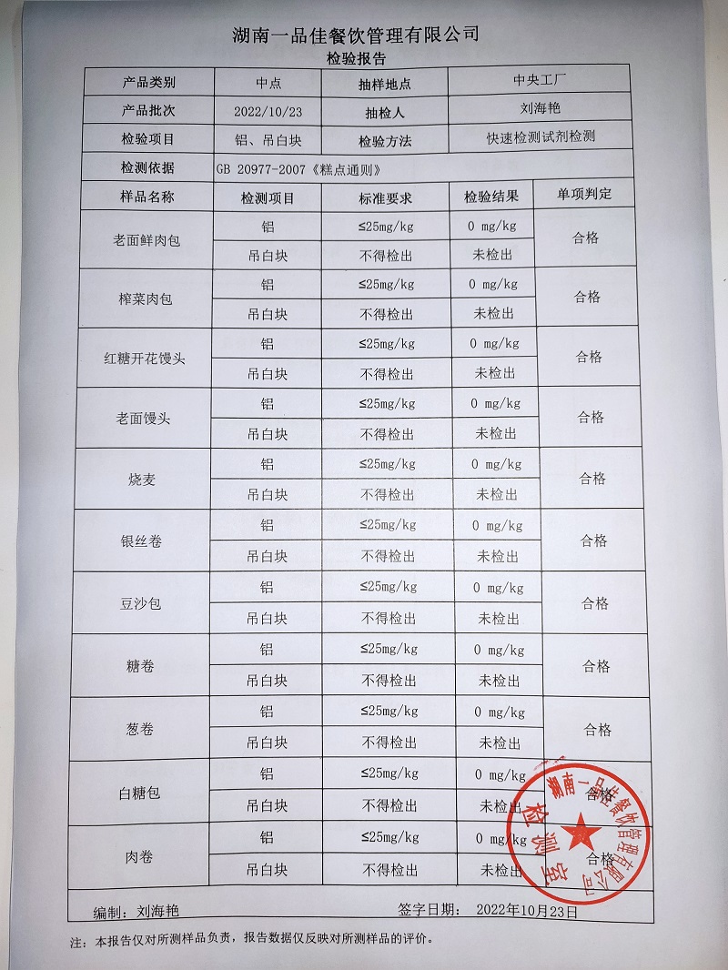 范小菜热食肉制品、调味料、意面、 一品佳中点、水产、农残2022.10.23
