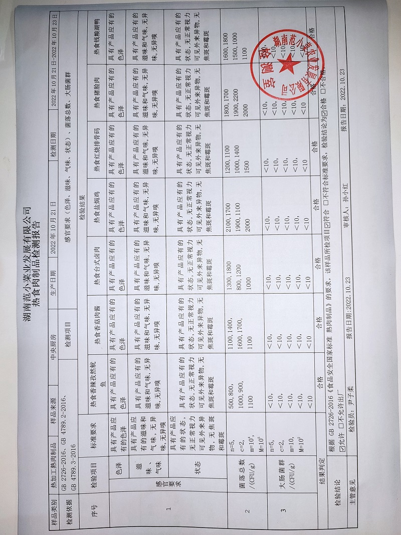 范小菜热食肉制品、调味料、 一品佳中点、水产、农残2022