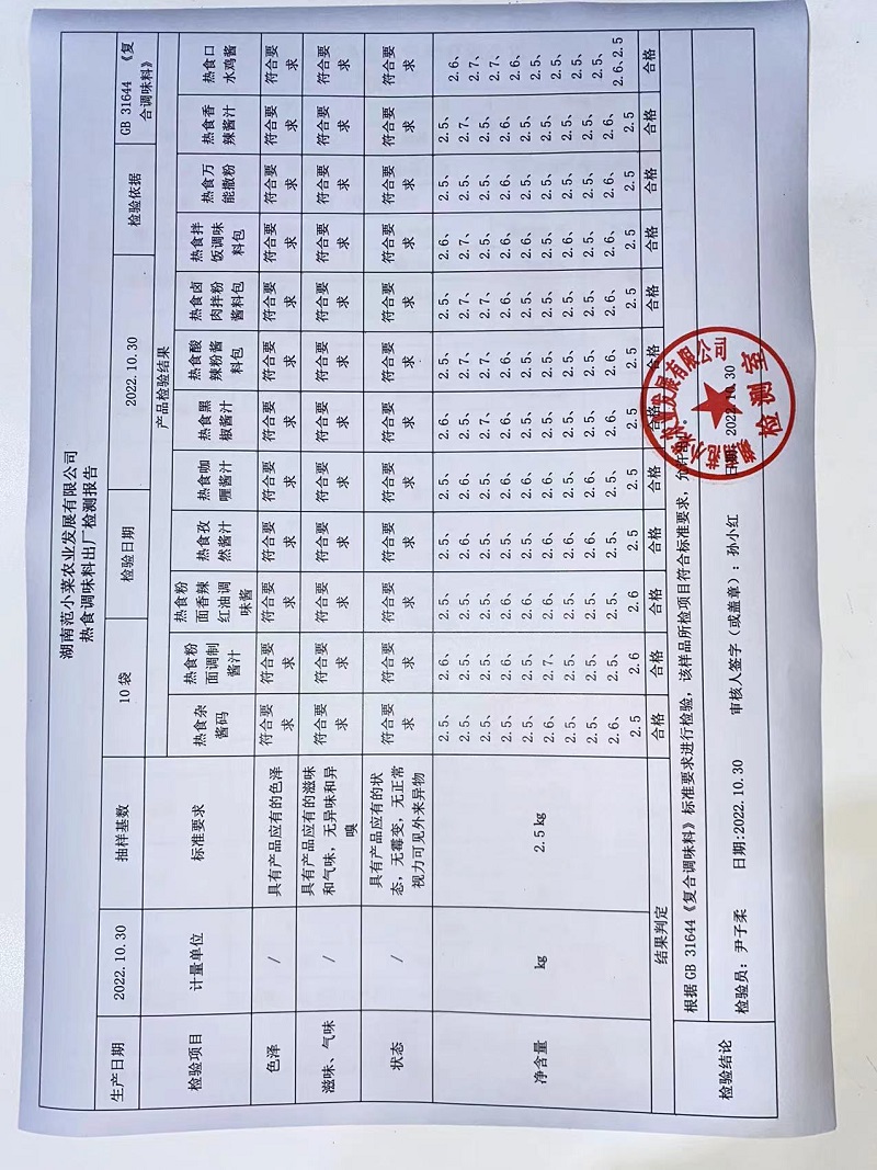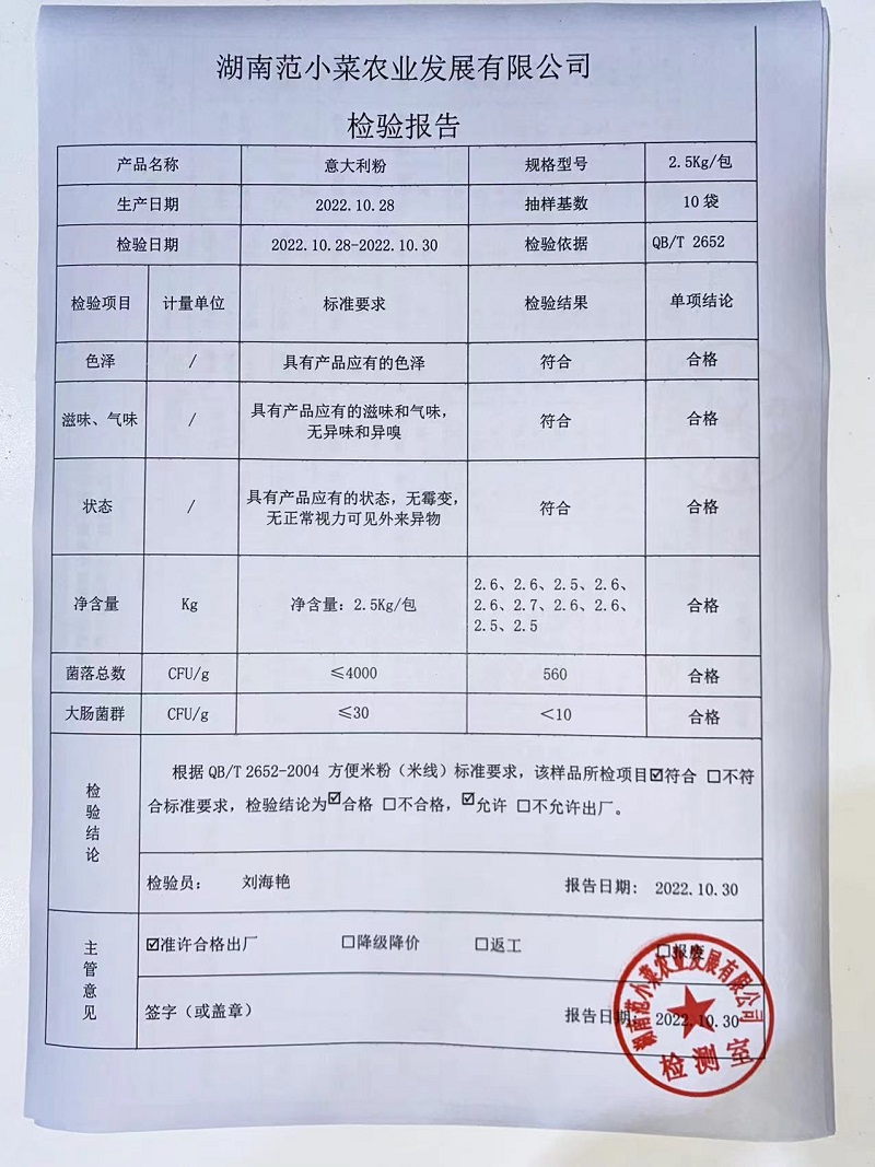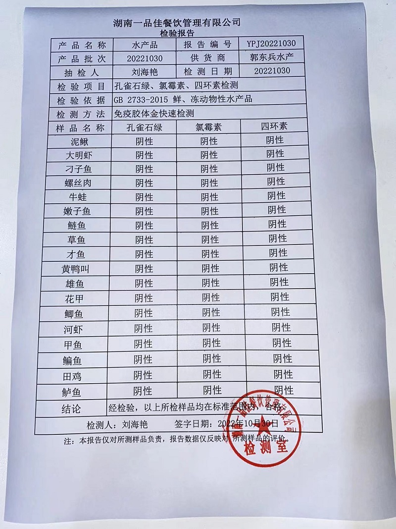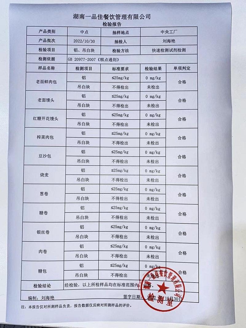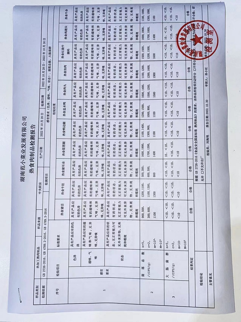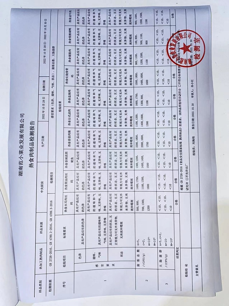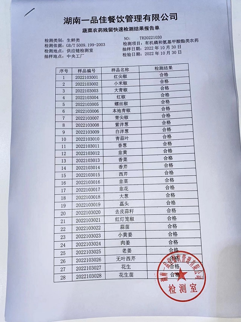 范小菜热食肉制品、热食调味料、意大利面、一品佳中点、水产、农残检测报告2022.10.30