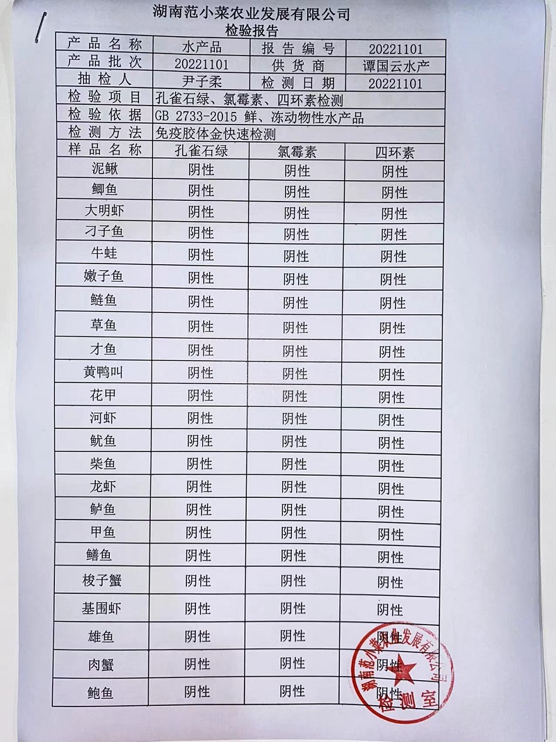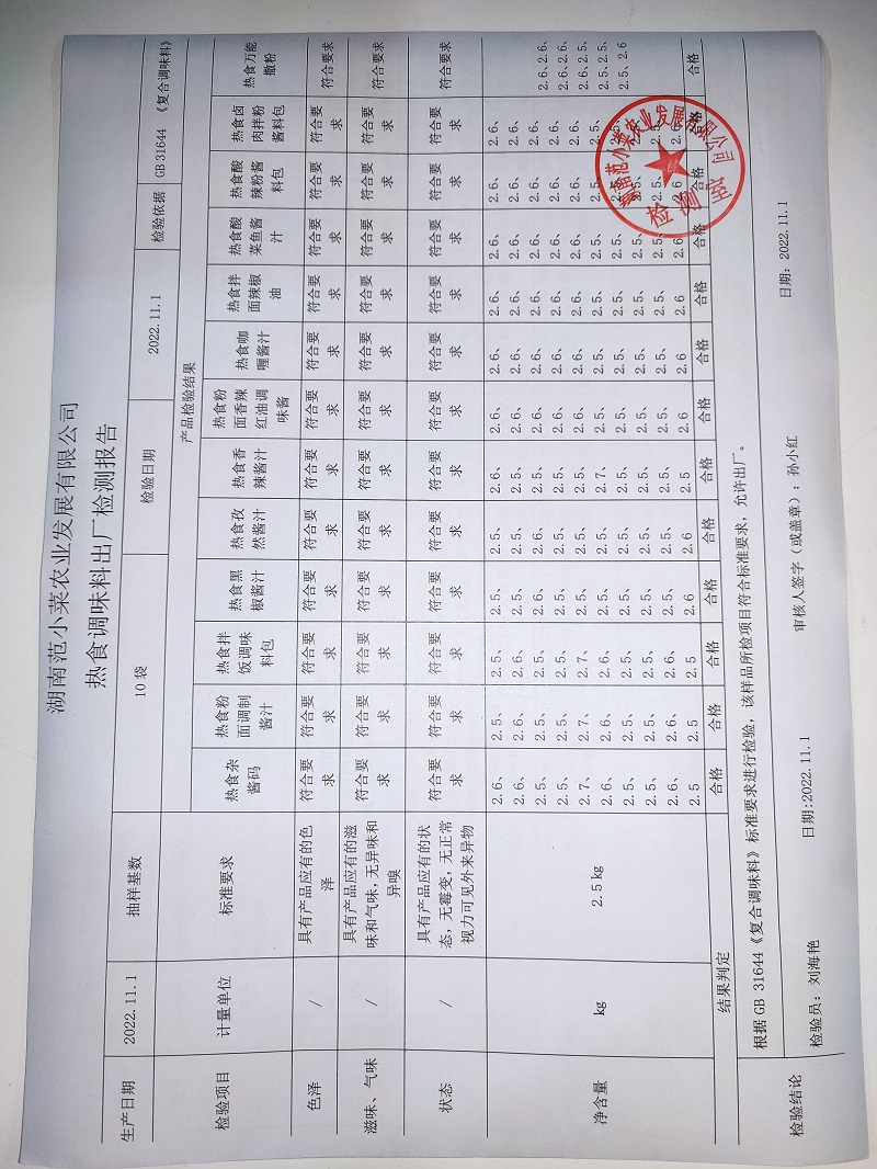 范小菜热食肉制品、调味料、意面、 一品佳中点、水产、农残2022.11.1