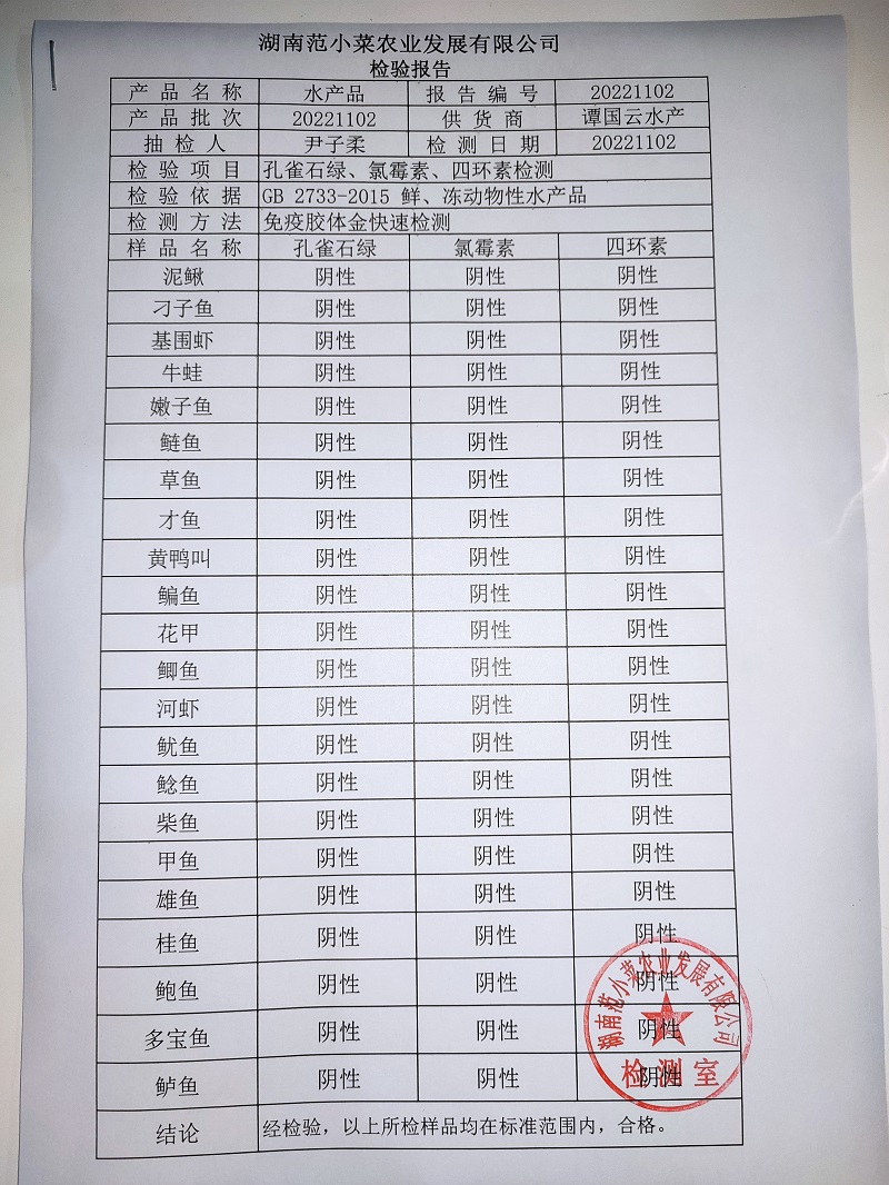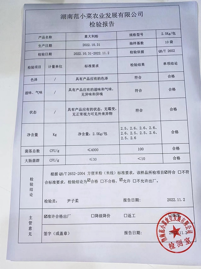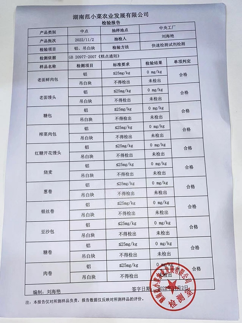 范小菜热食肉制品、调味料、意面、 一品佳中点、水产、农残2022.11.2
