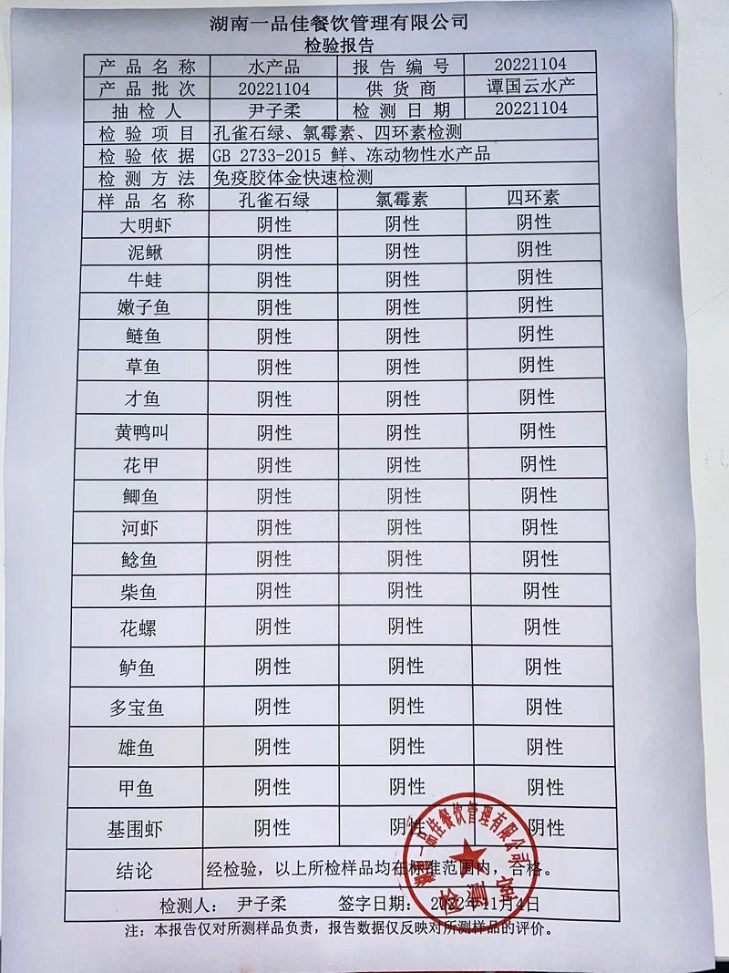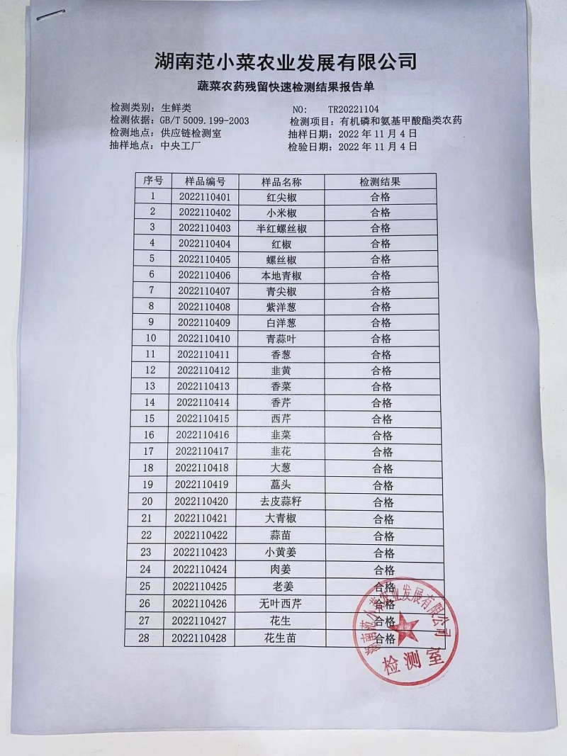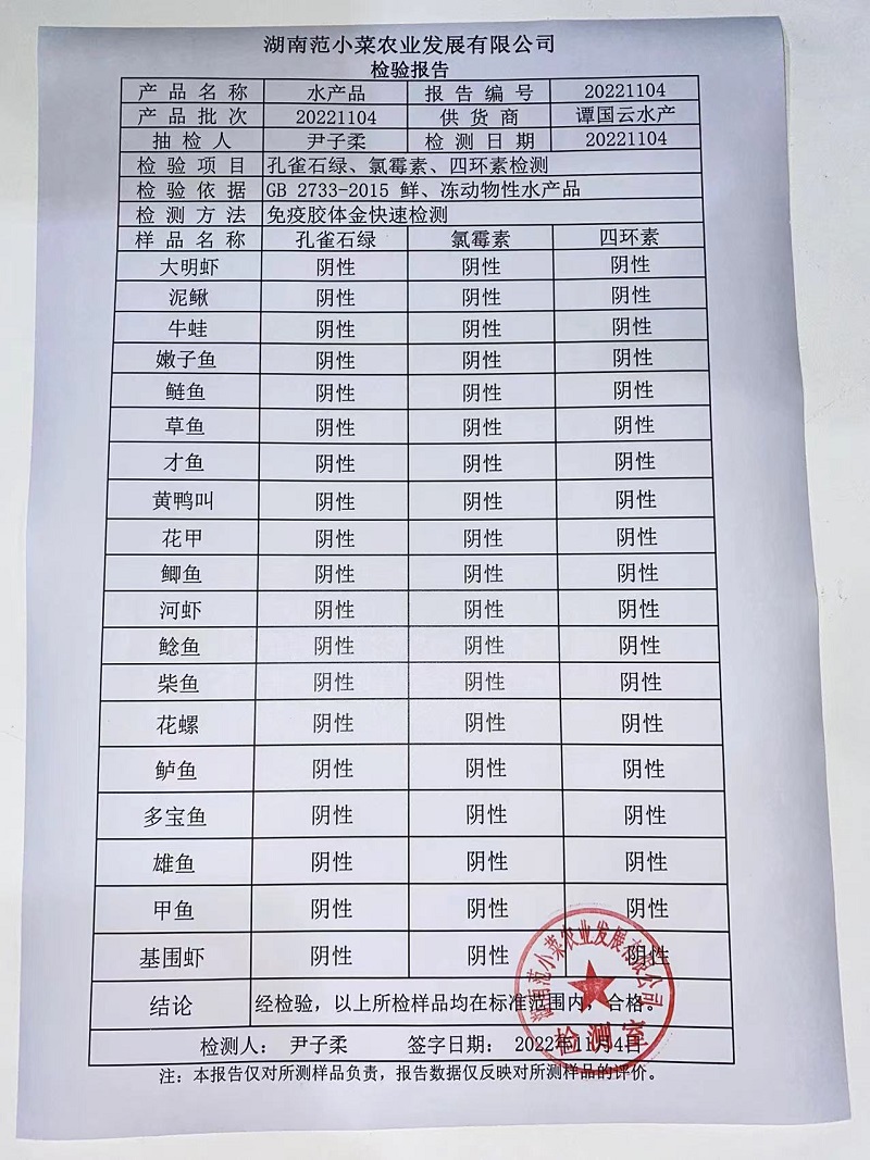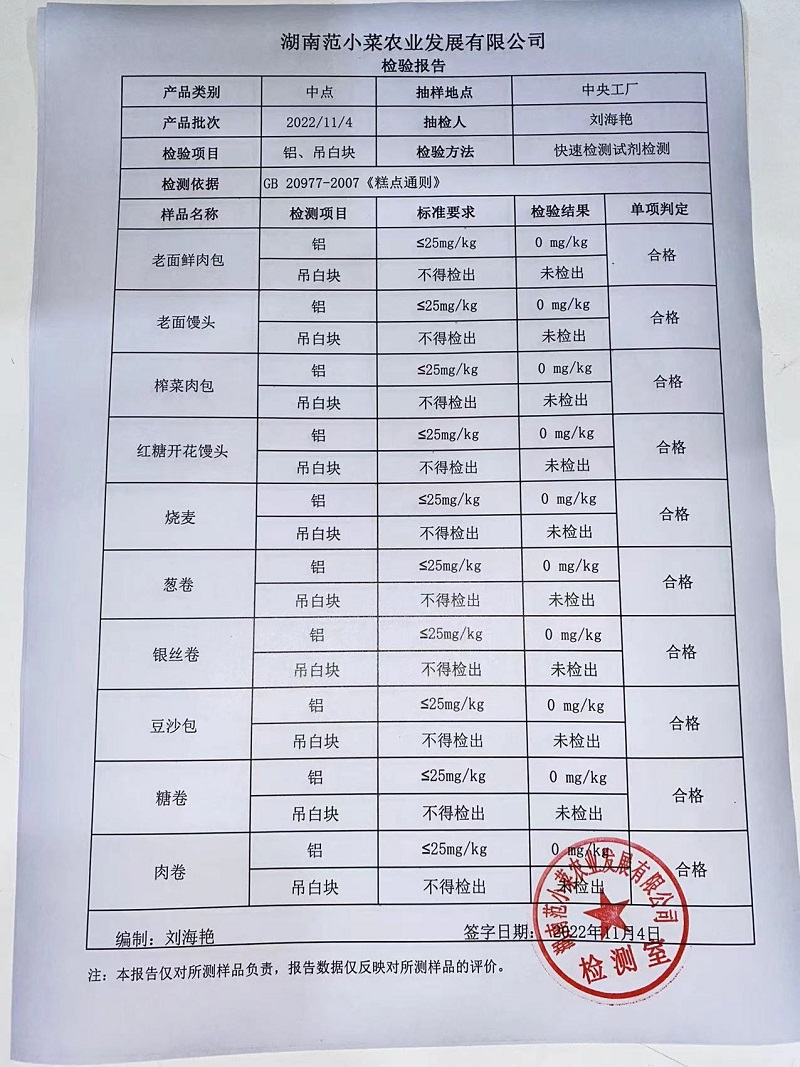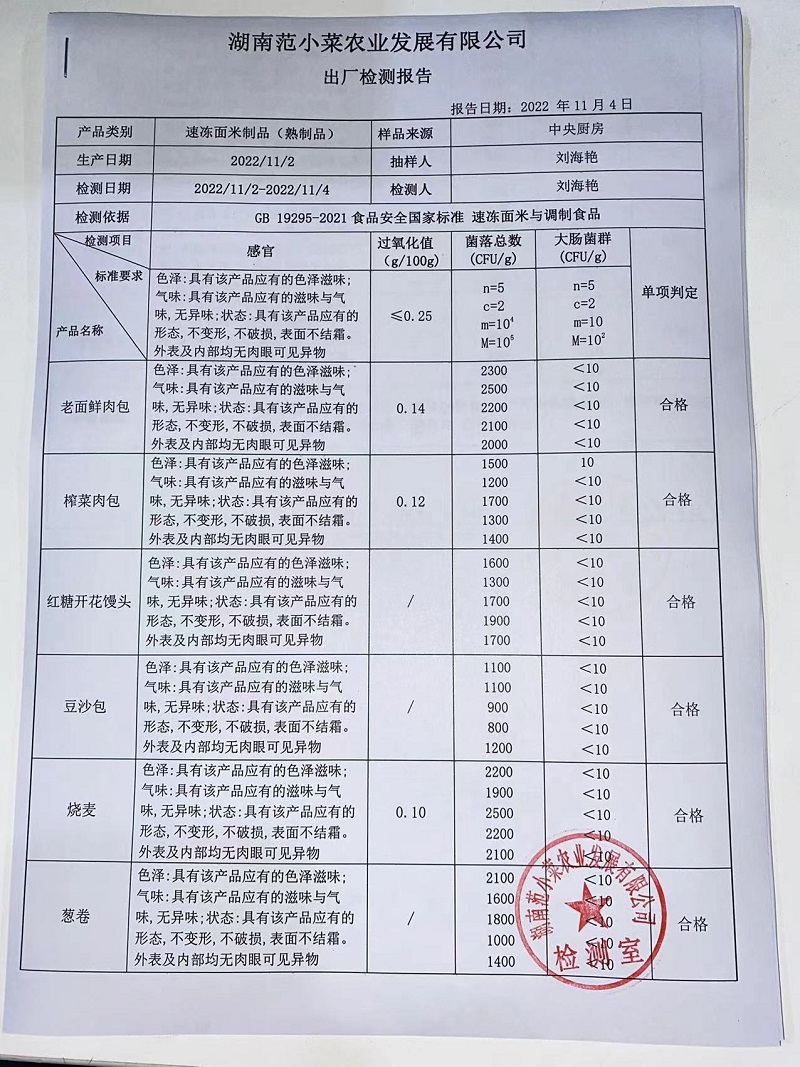 范小菜热食肉制品、调味料、意面、 一品佳中点、水产、农残2022.11.4