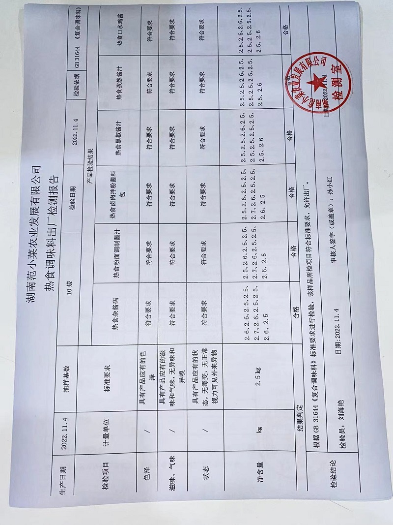 范小菜热食肉制品、调味料、 一品佳中点、水产、农残2022