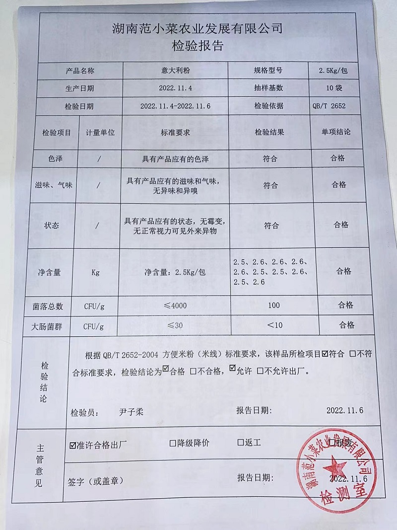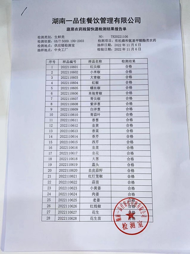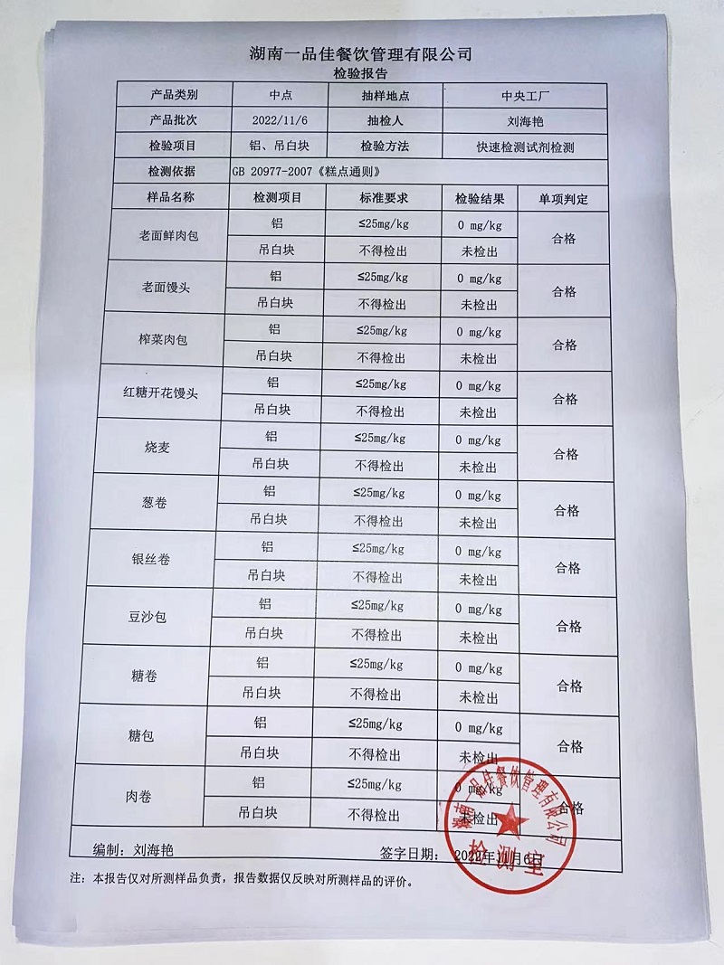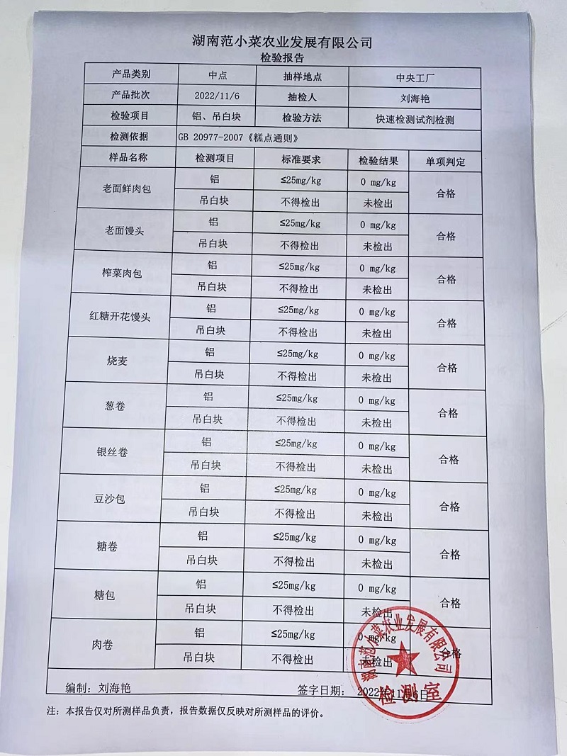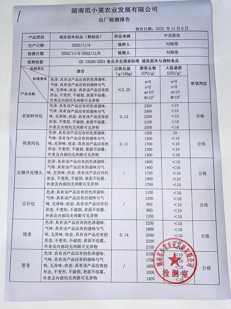 范小菜热食肉制品、调味料、意面 一品佳中点、水产、农残2022.11.6