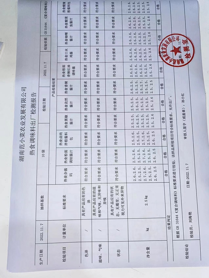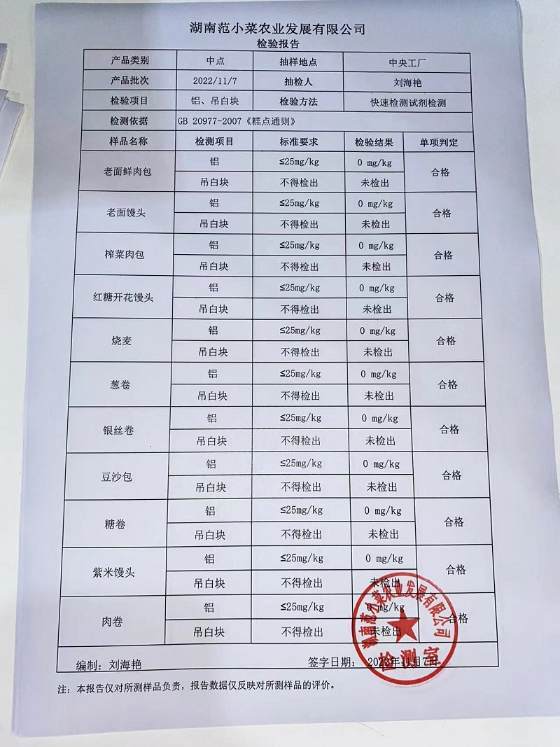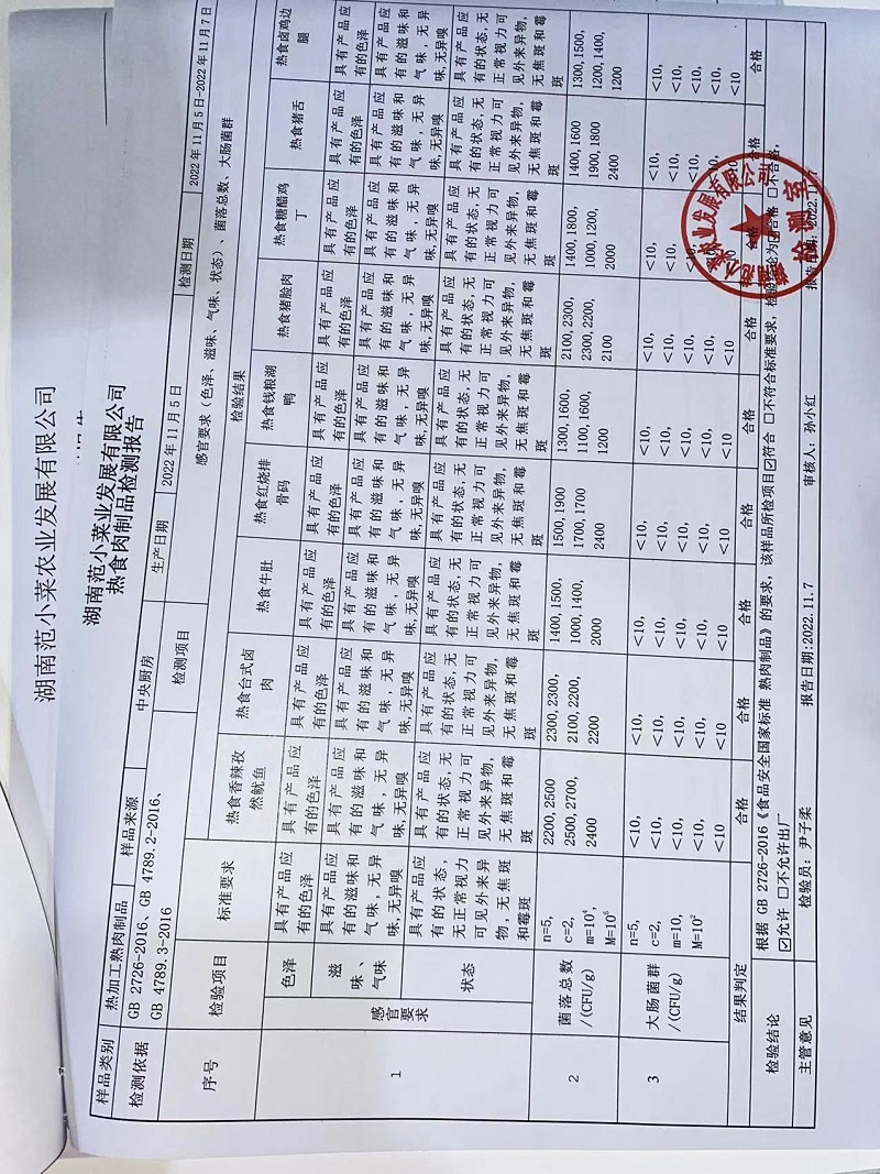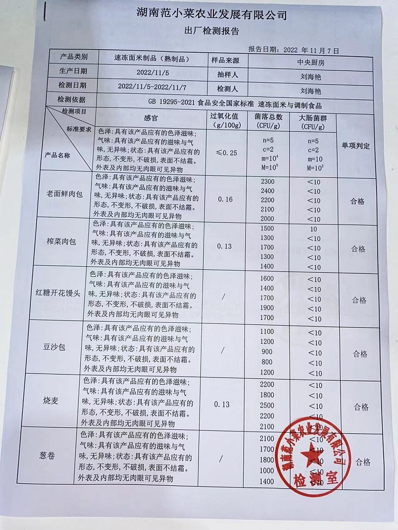 范小菜热食肉制品、调味料、意面 一品佳中点、水产、农残2022.11.7