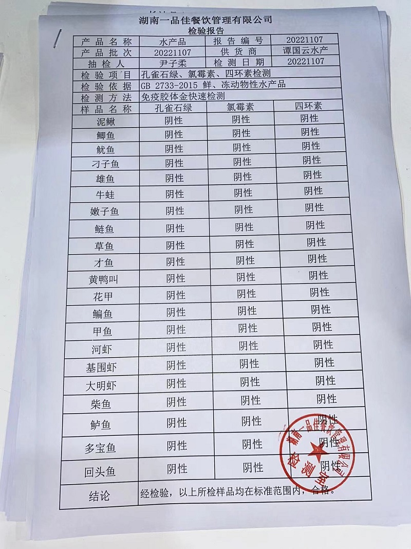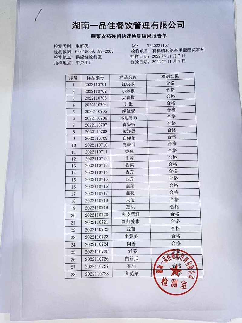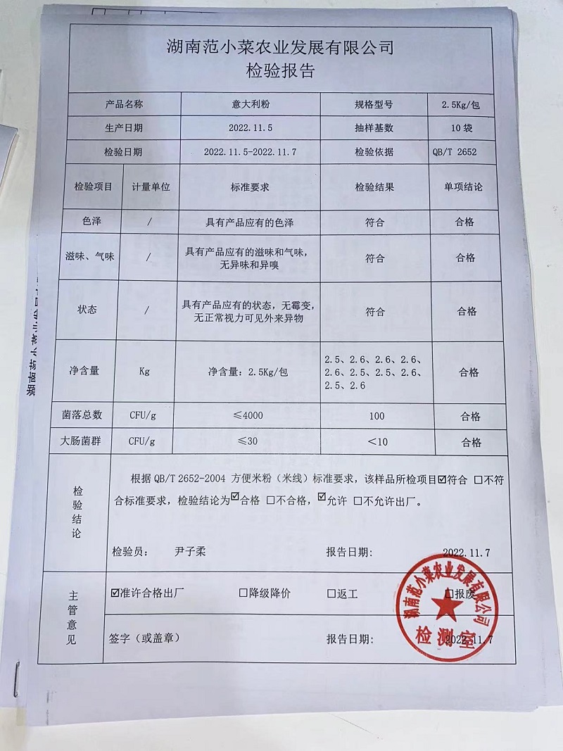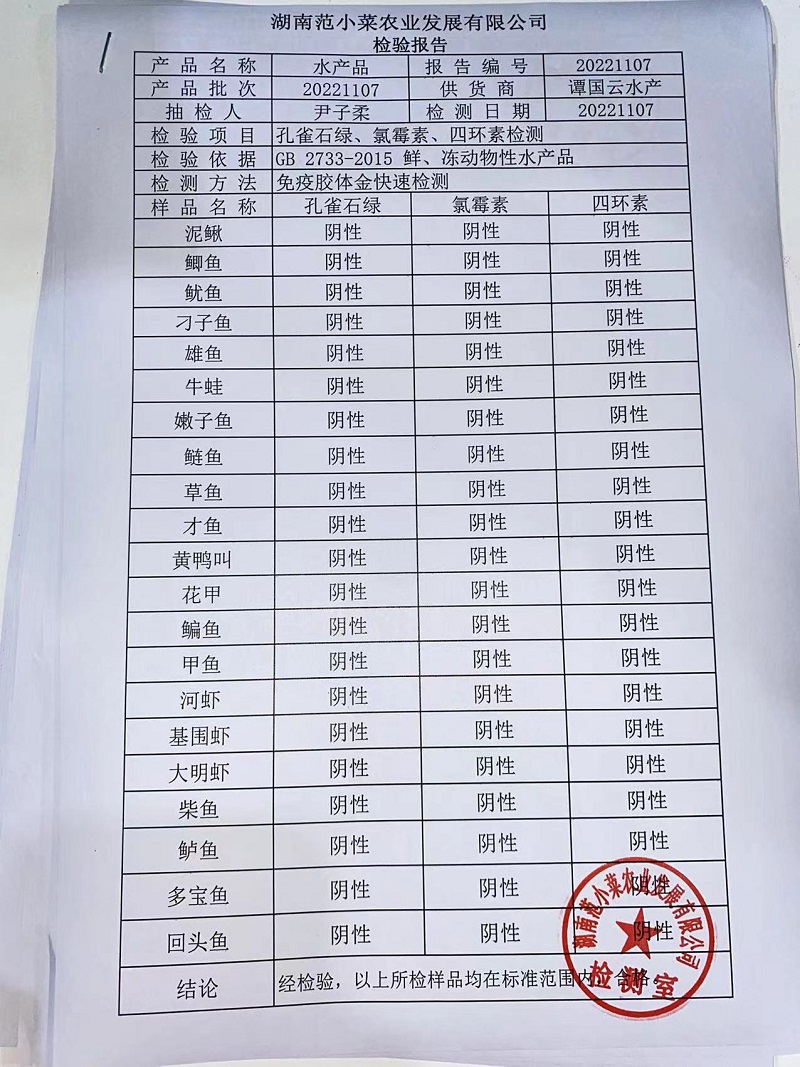 范小菜热食肉制品、调味料、意面 一品佳中点、水产、农残2022.11.7