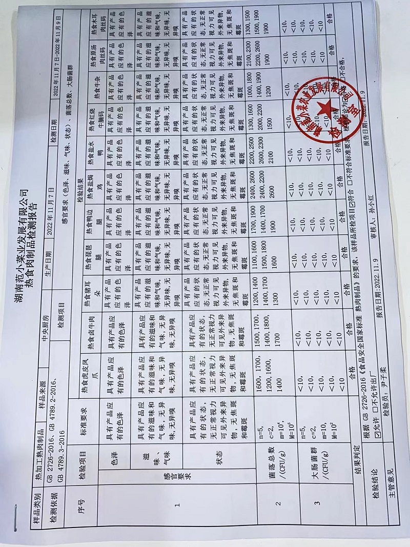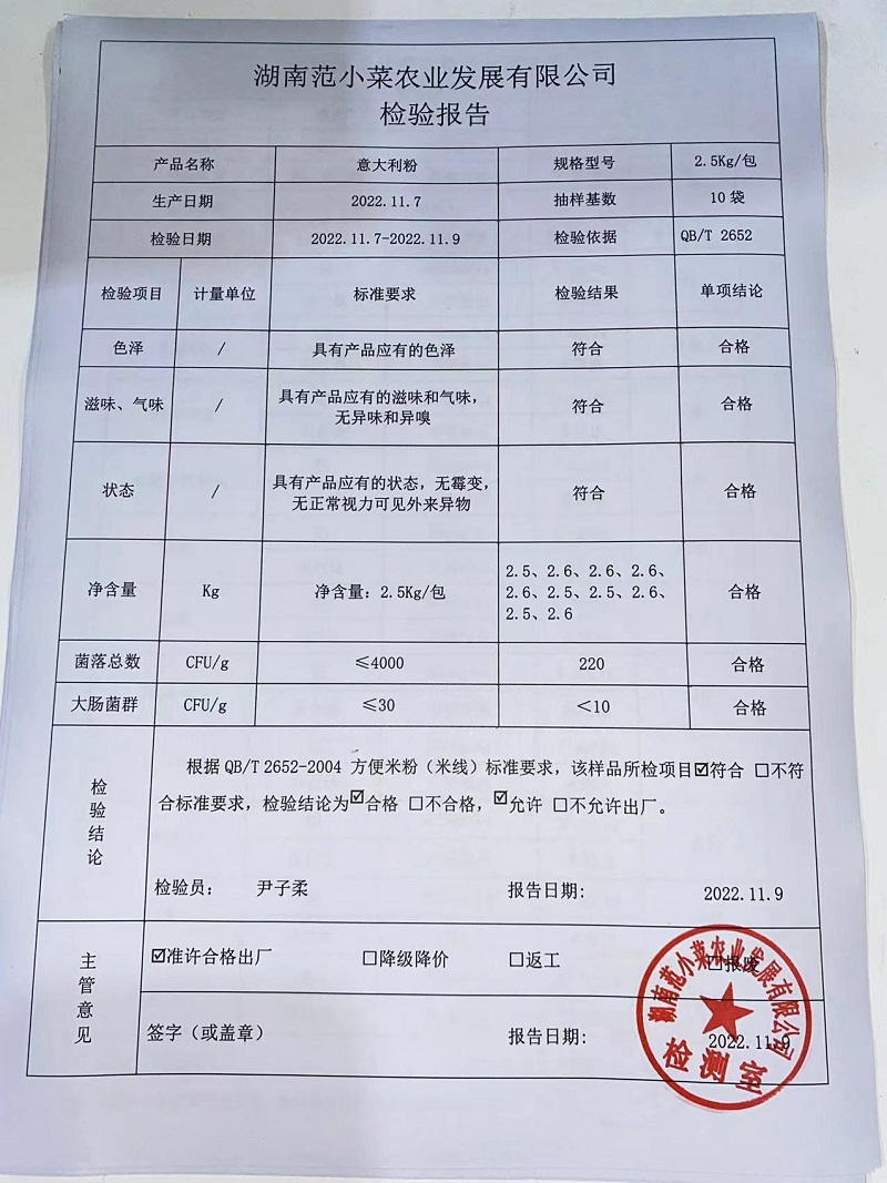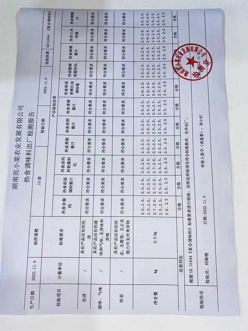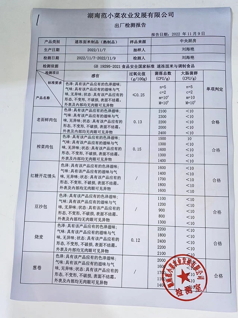 范小菜热食肉制品、调味料、 意面、农残、速冻米面制品、一品