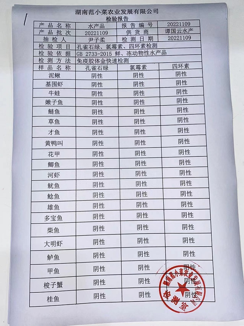 范小菜热食肉制品、调味料、意面、 一品佳中点、水产、农残2022.11.9