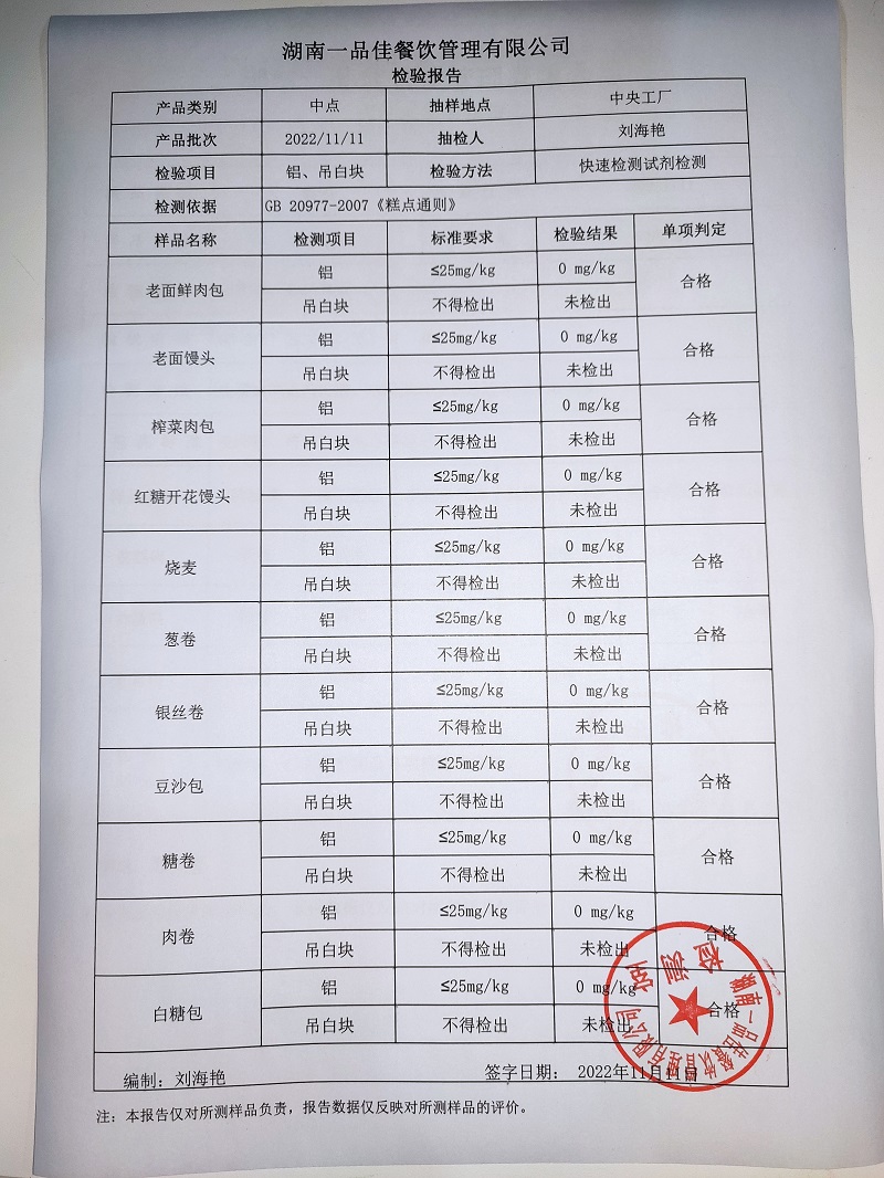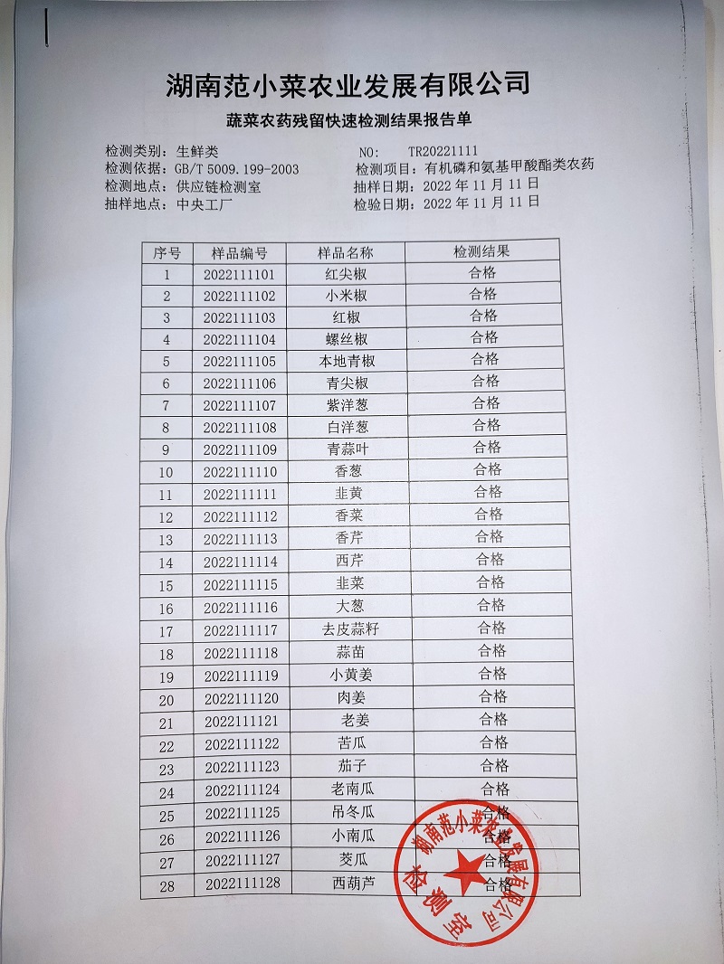 范小菜热食肉制品、调味料、 农残、中点、水产、 一品佳中点、水产、农残2022.11.11