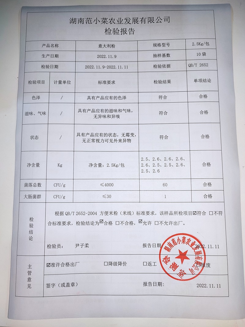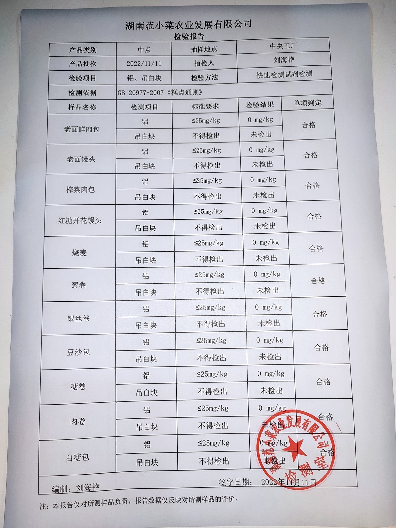范小菜热食肉制品、调味料、 意面、农残、速冻米面制品、一品