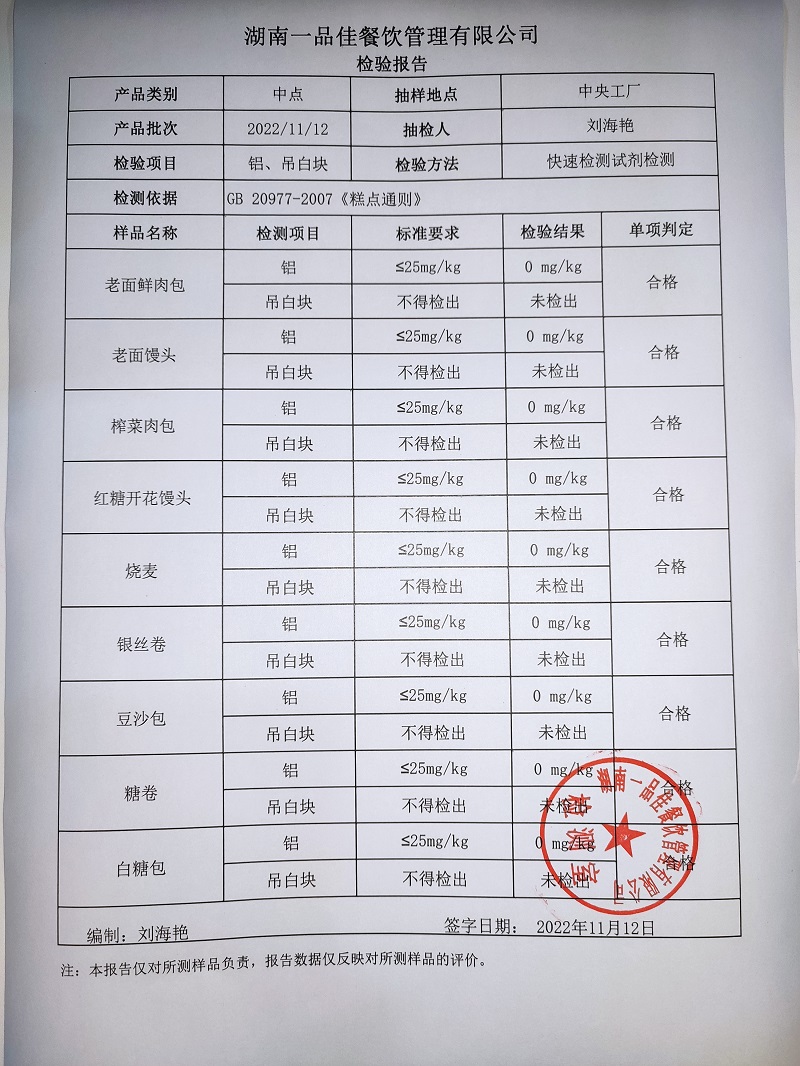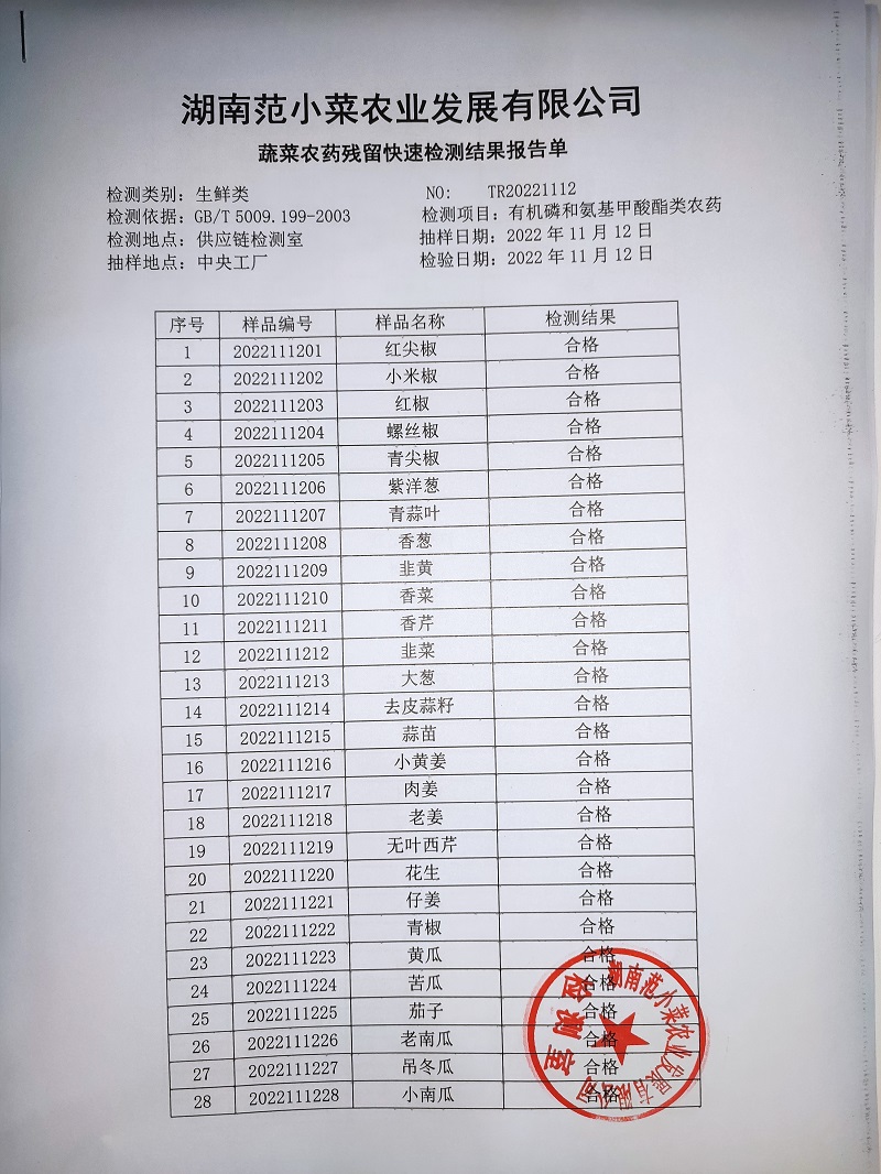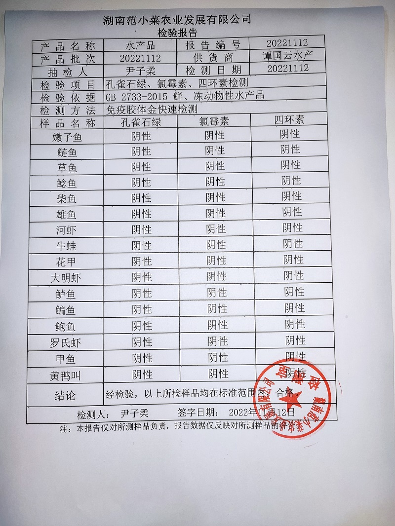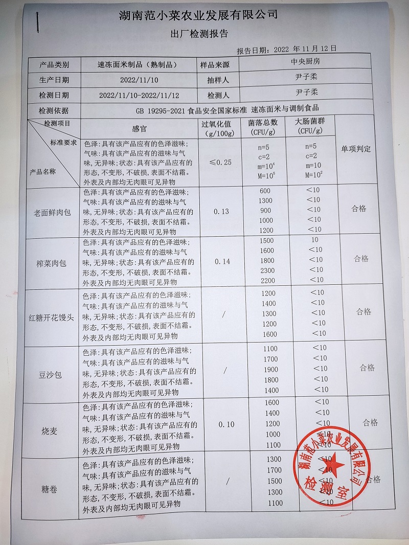 范小菜热食肉制品、调味料、意面、 一品佳中点、水产、农残2022.11.12