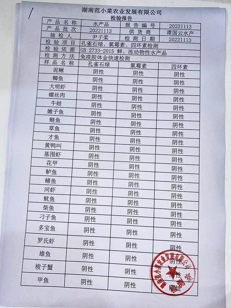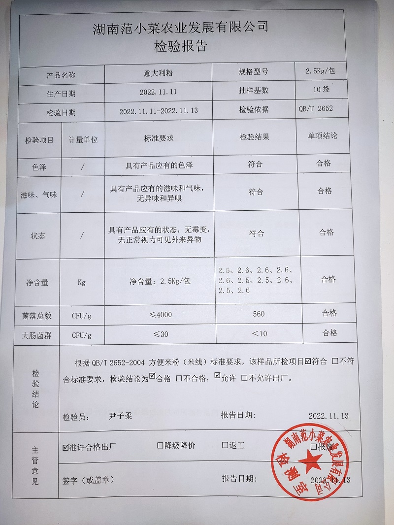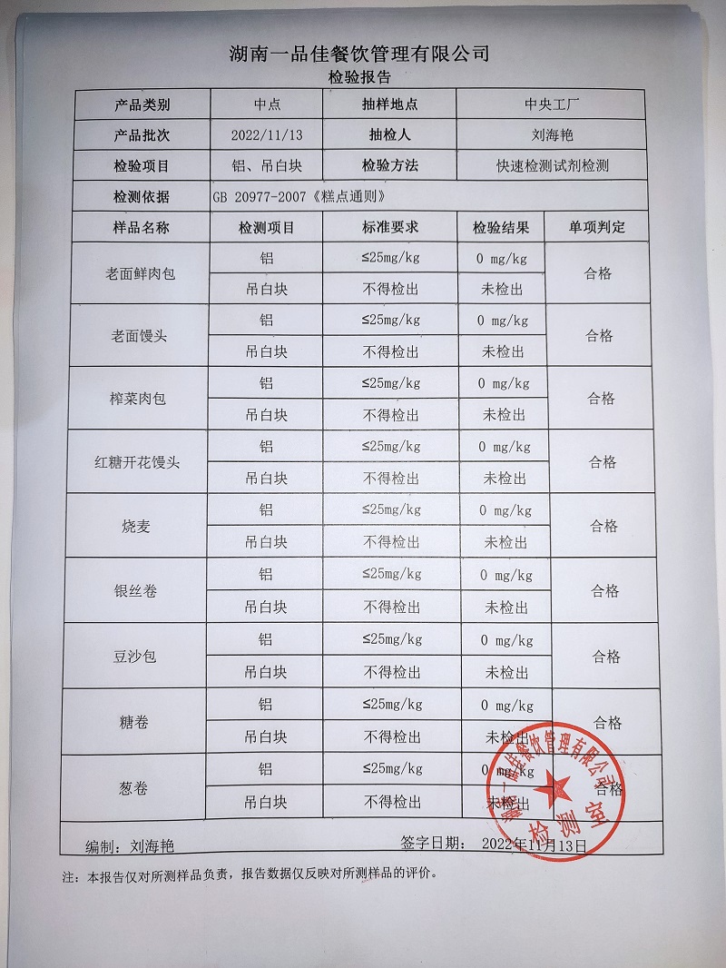 范小菜热食肉制品、调味料、意面 一品佳中点、水产、农残2022.11.13