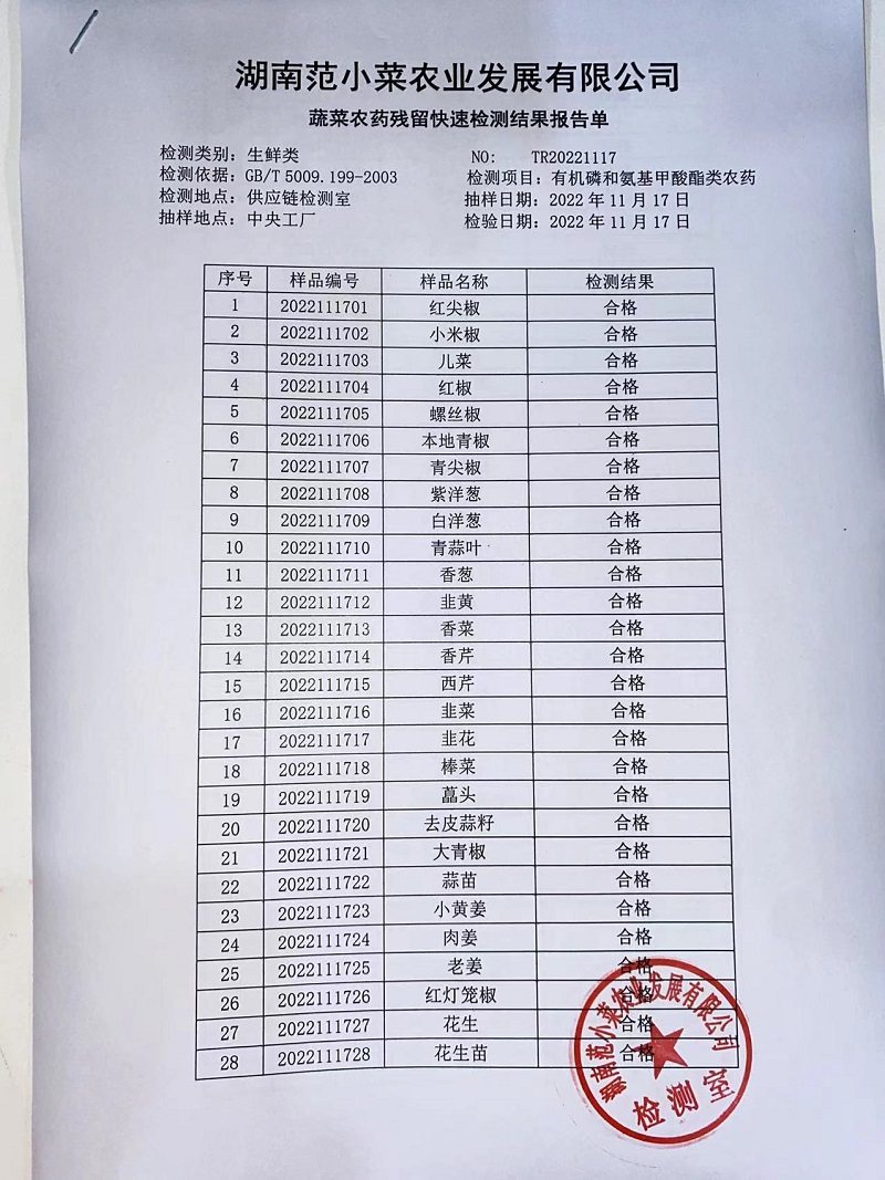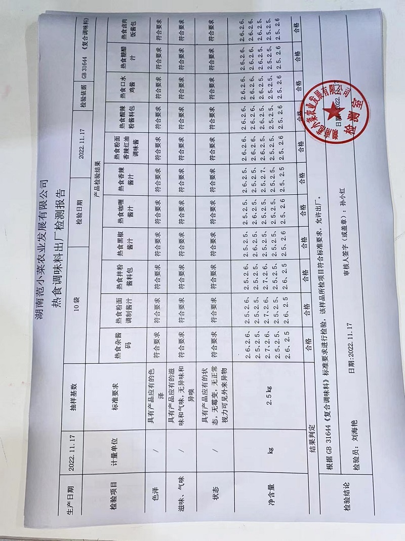 范小菜、一品佳热食肉制品、调味料、 中点、水产、农残、速冻