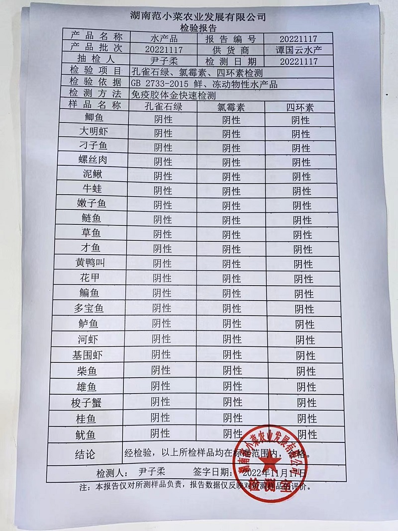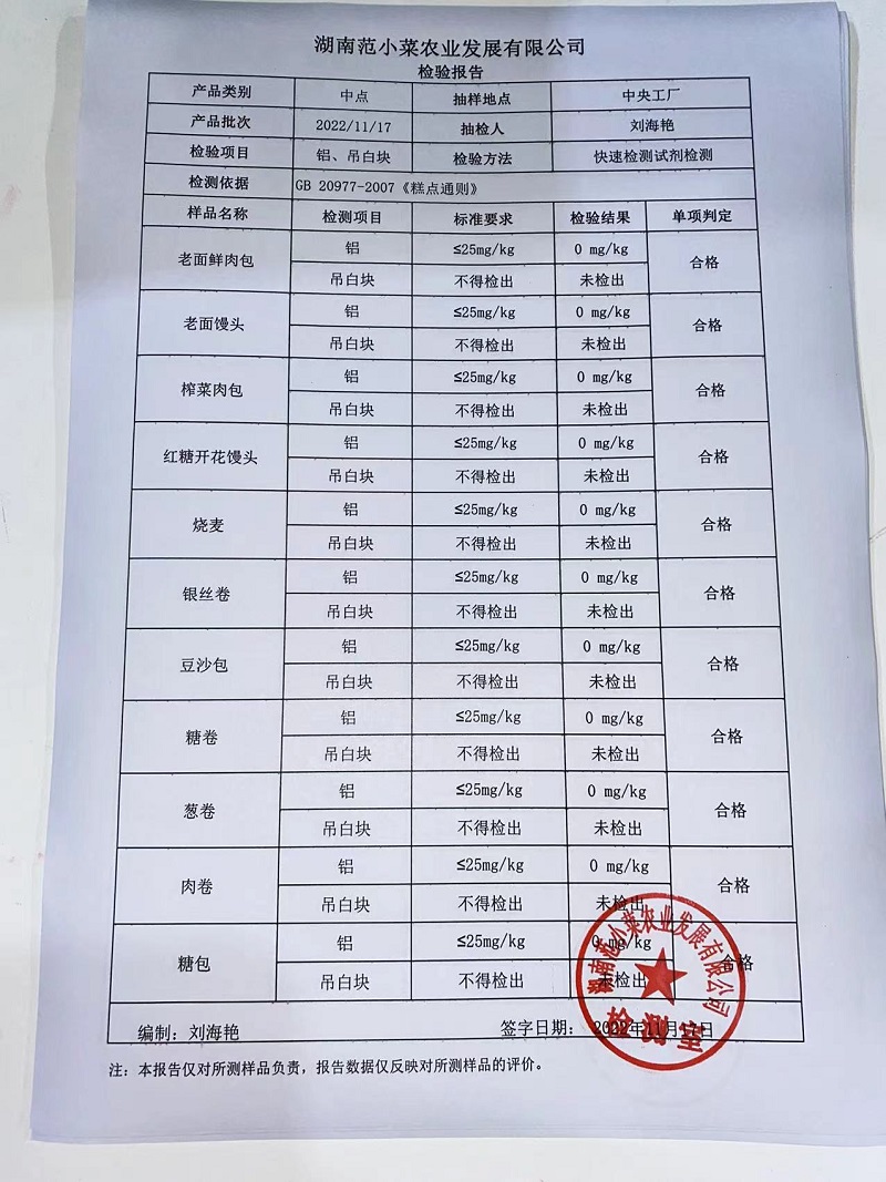 范小菜热食肉制品、调味料、意面、 一品佳中点、水产、农残2022.11.17