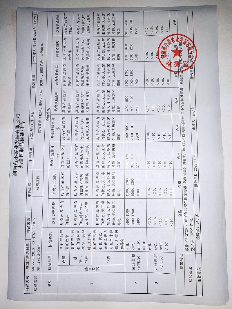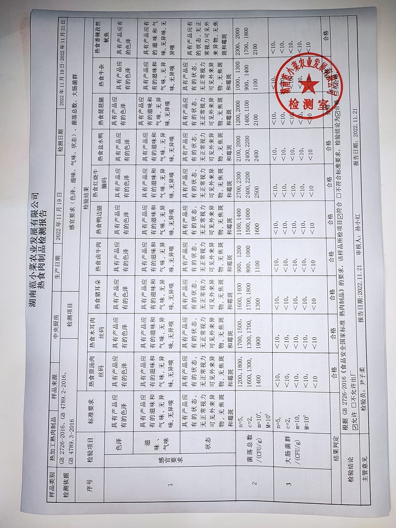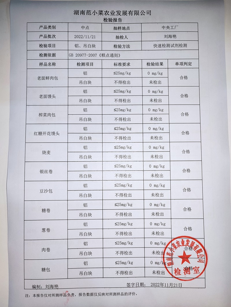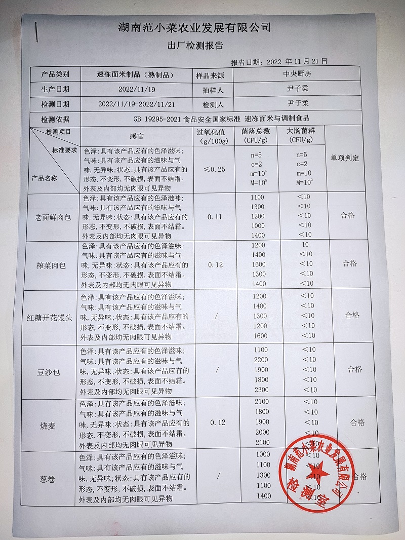 范小菜、一品佳热食肉制品、调味料、意面、 中点、水产、农残、速冻米面制品2022.11.21