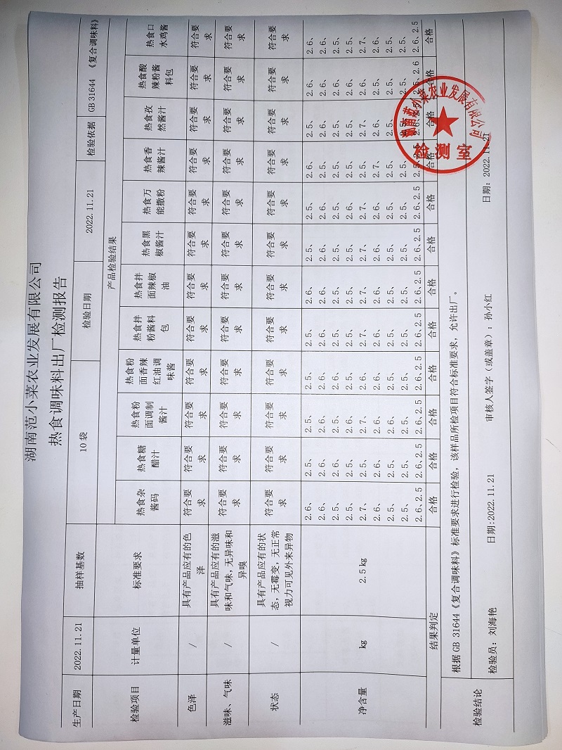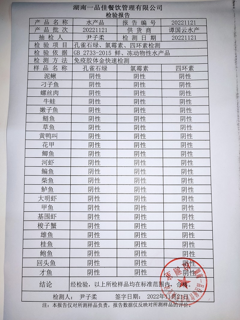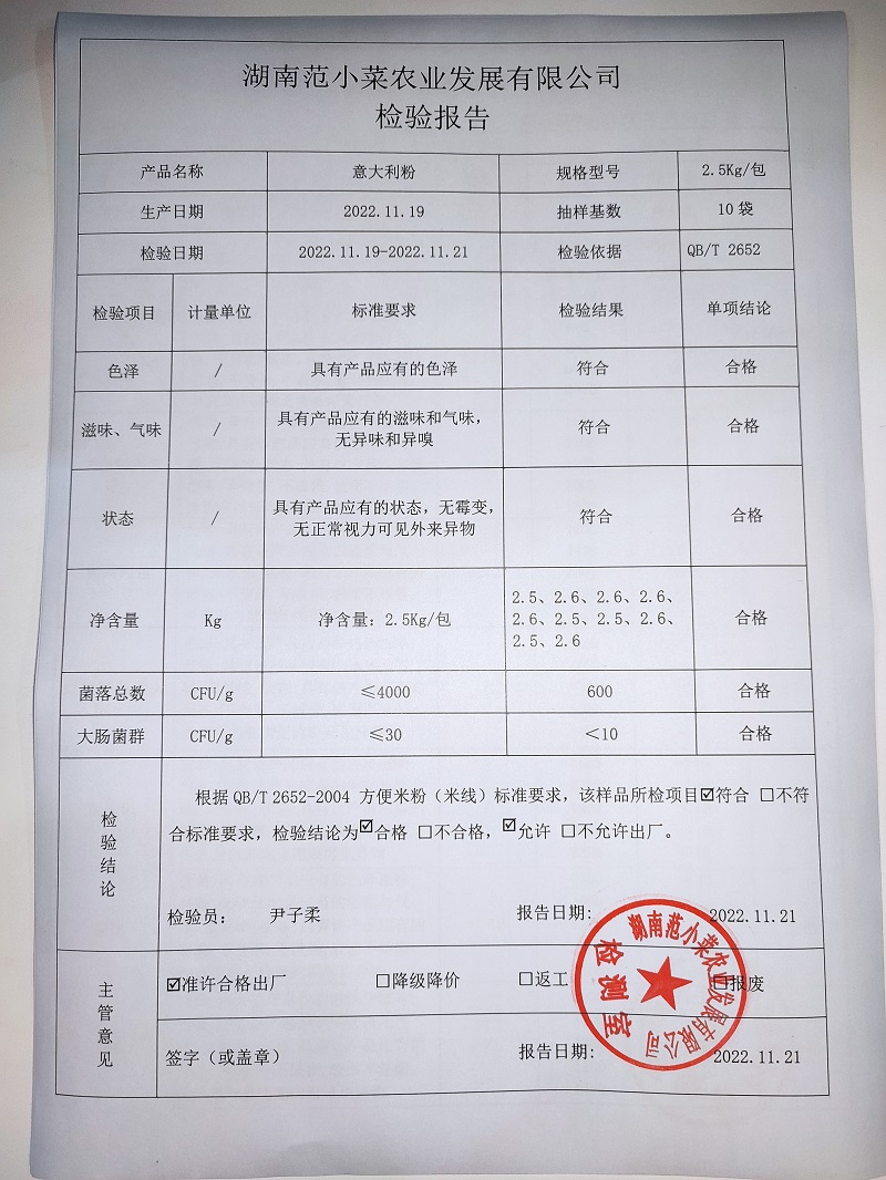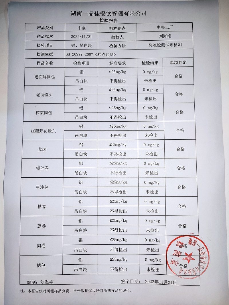 范小菜、一品佳热食肉制品、调味料、意面、 中点、水产、农残、速冻米面制品2022.11.21