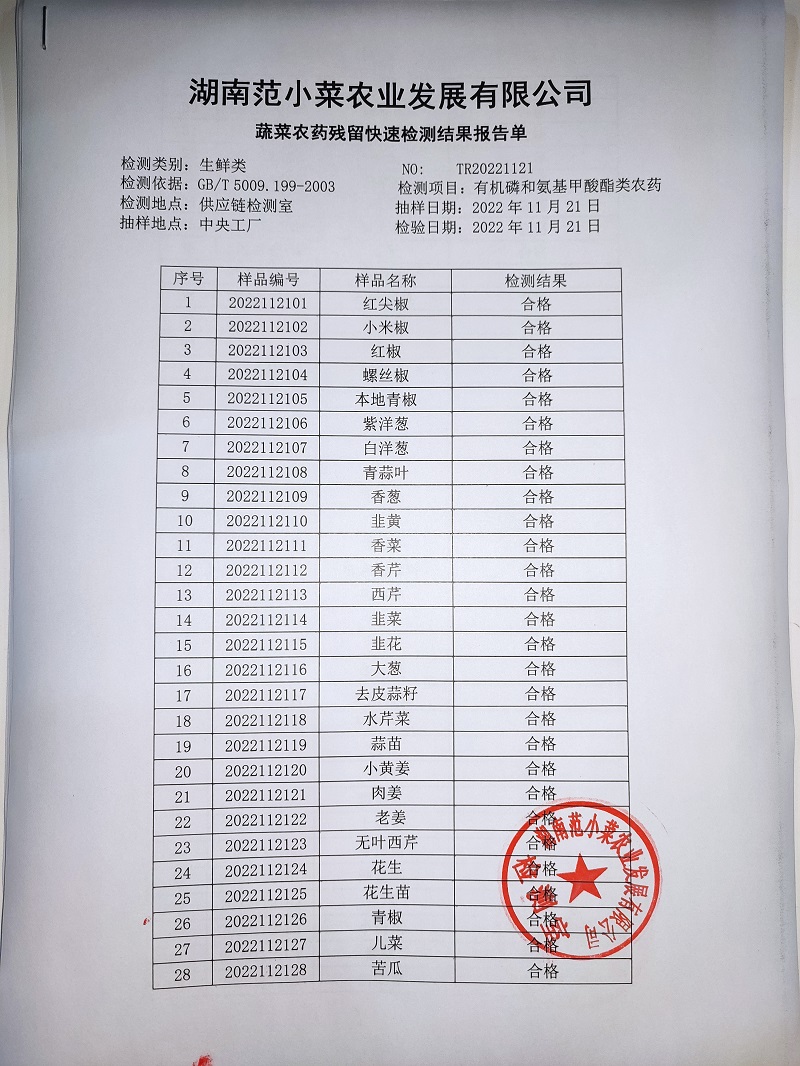 范小菜、一品佳热食肉制品、调味料、意面、 中点、水产、农残