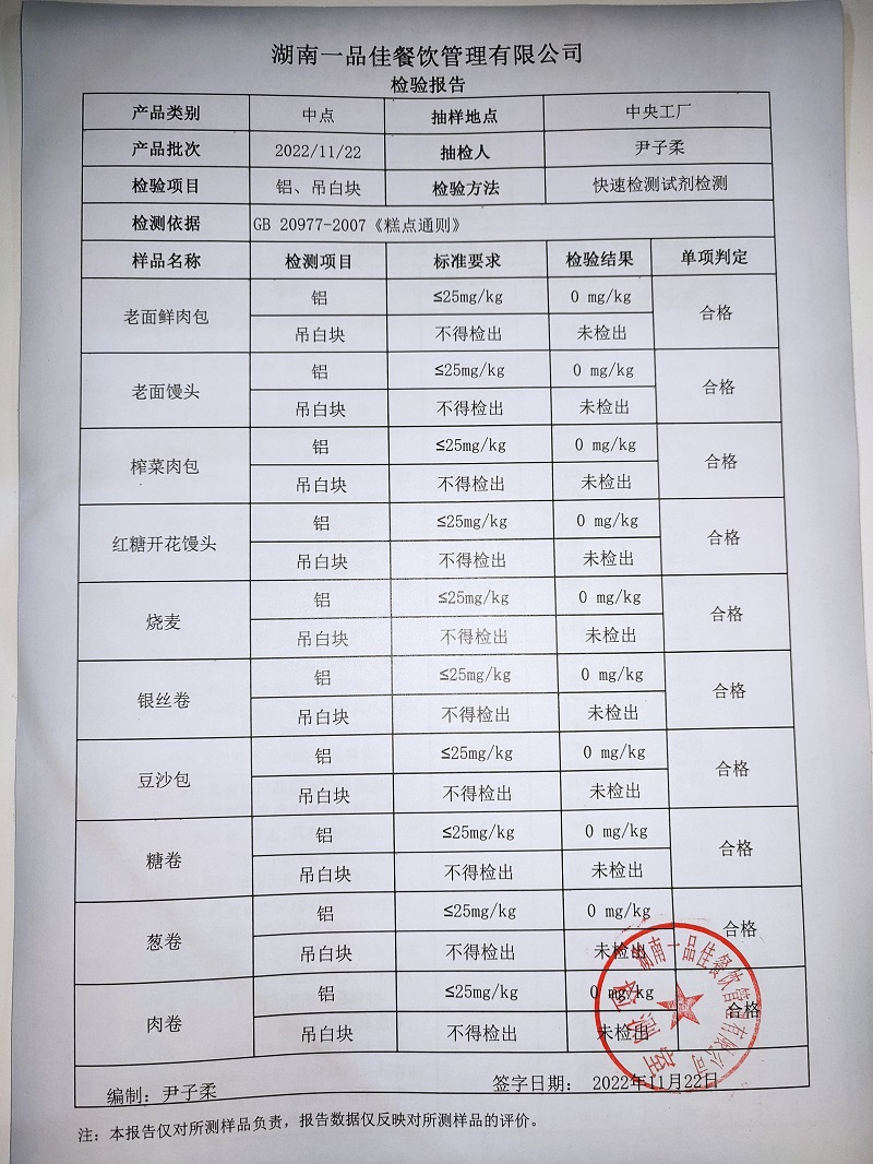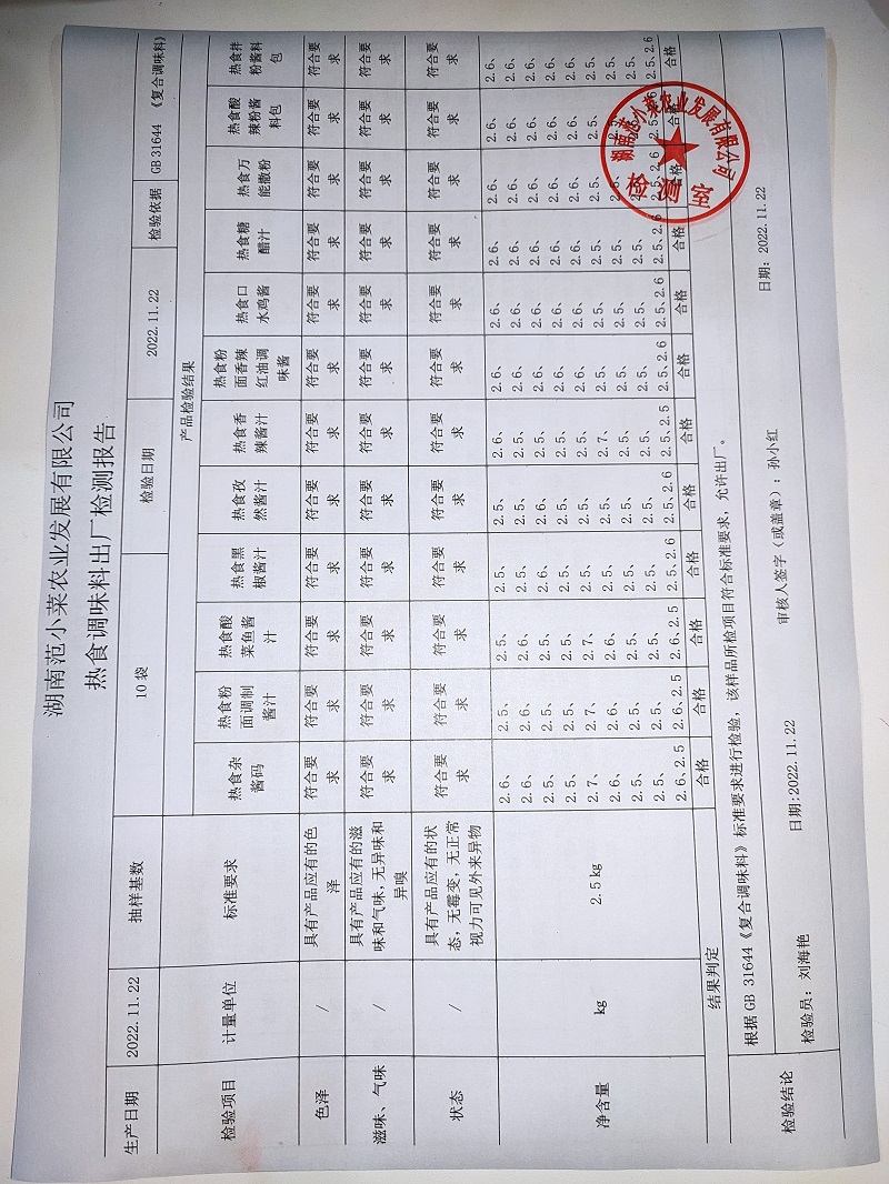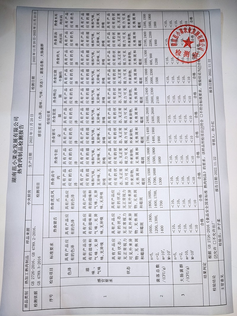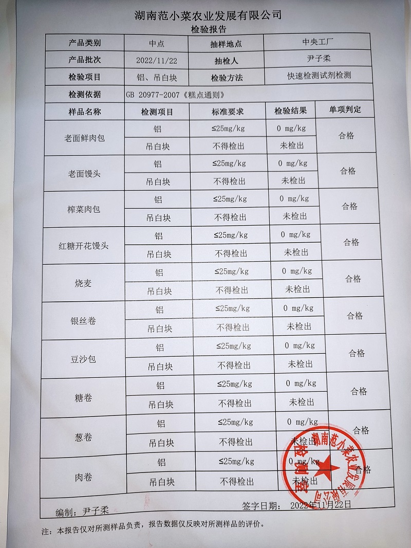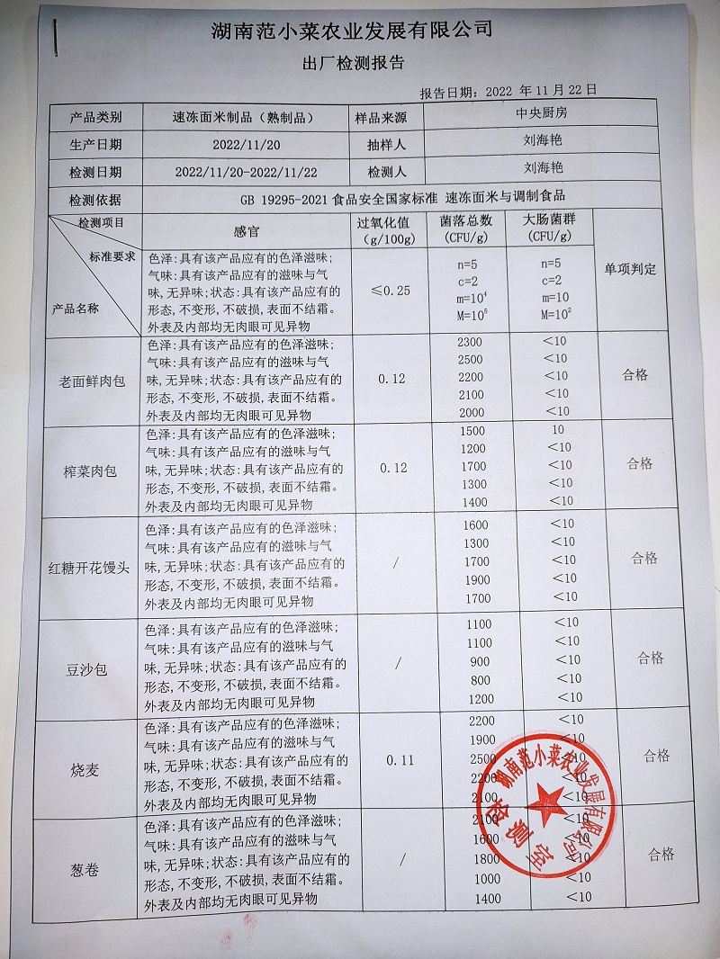 范小菜、一品佳热食肉制品、调味料、意面、 中点、水产、农残、速冻米面制品2022.11.22