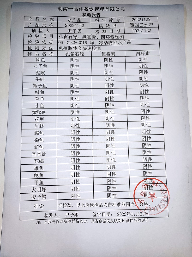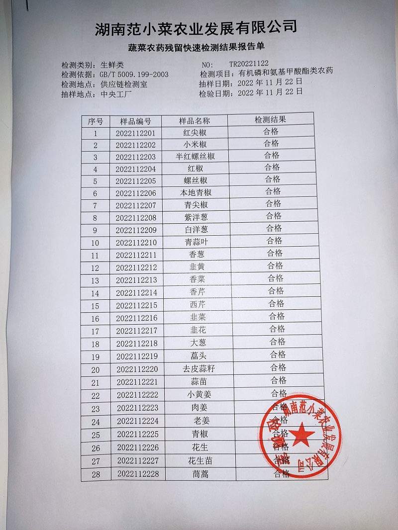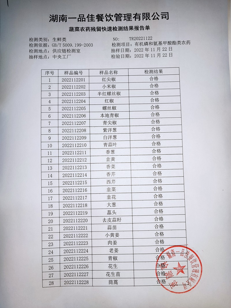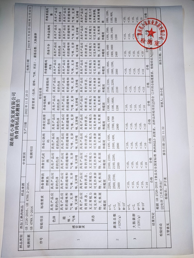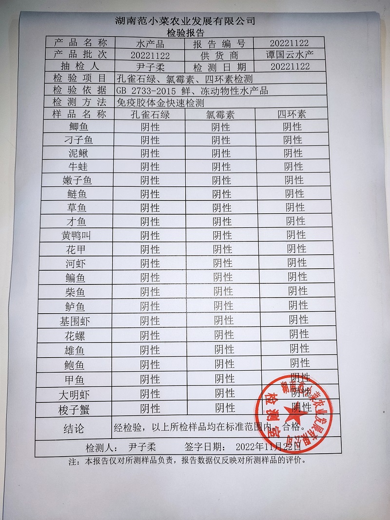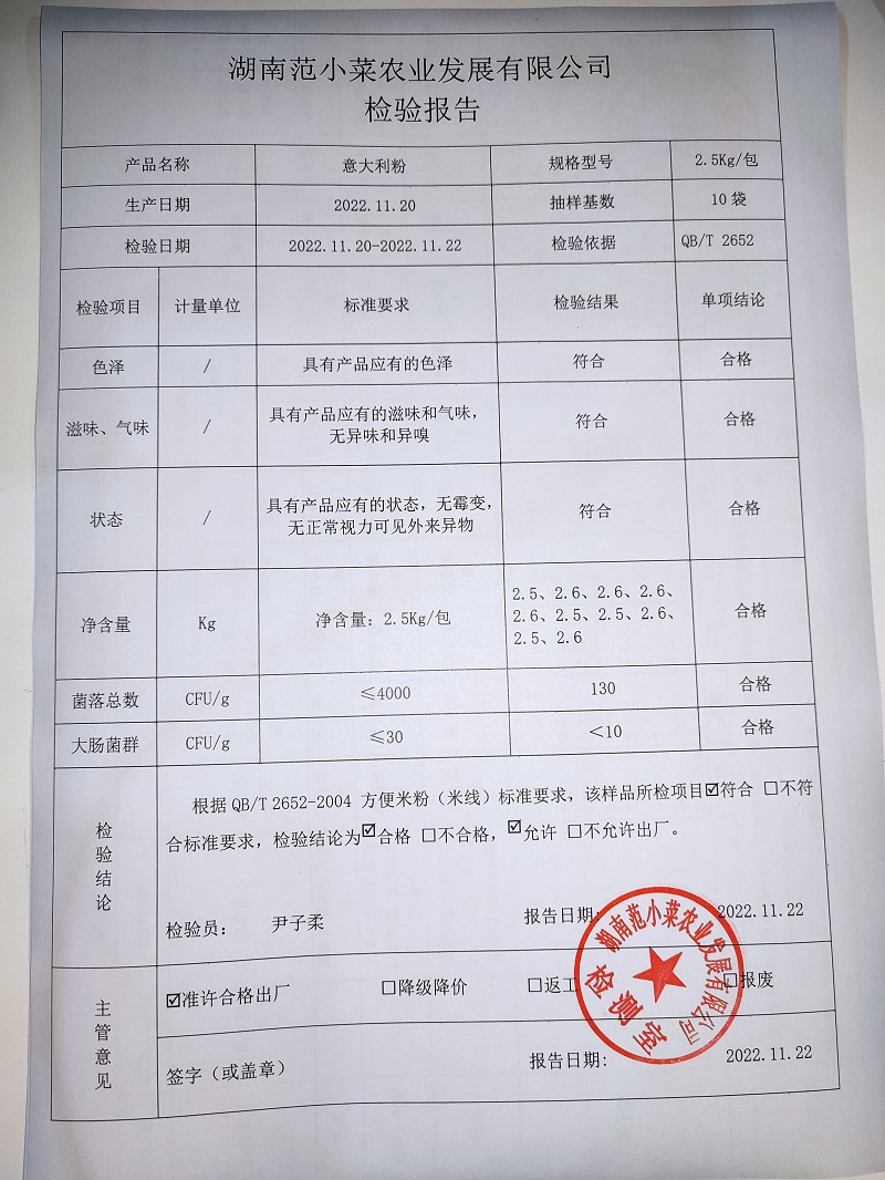 范小菜、一品佳热食肉制品、调味料、意面、 中点、水产、农残、速冻米面制品2022.11.22