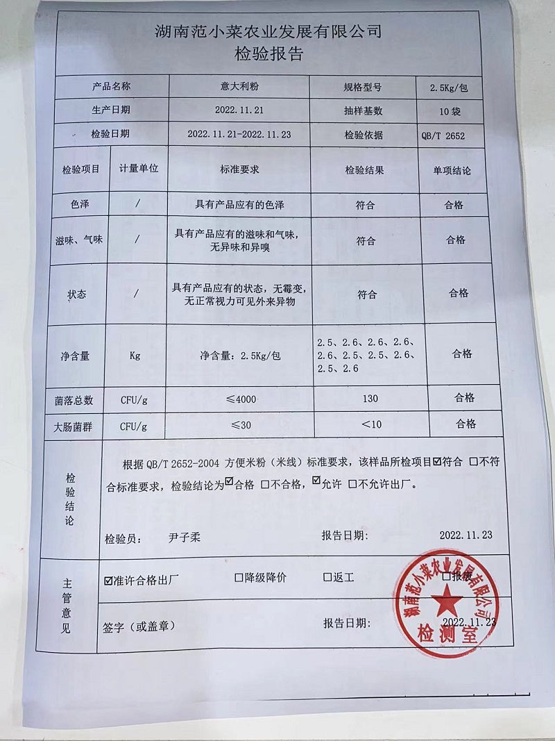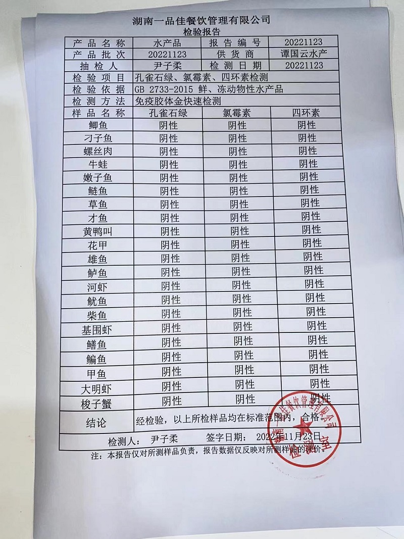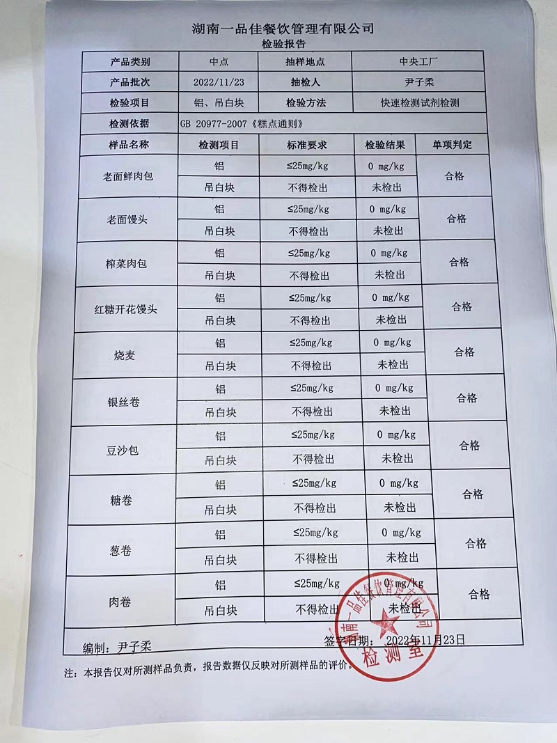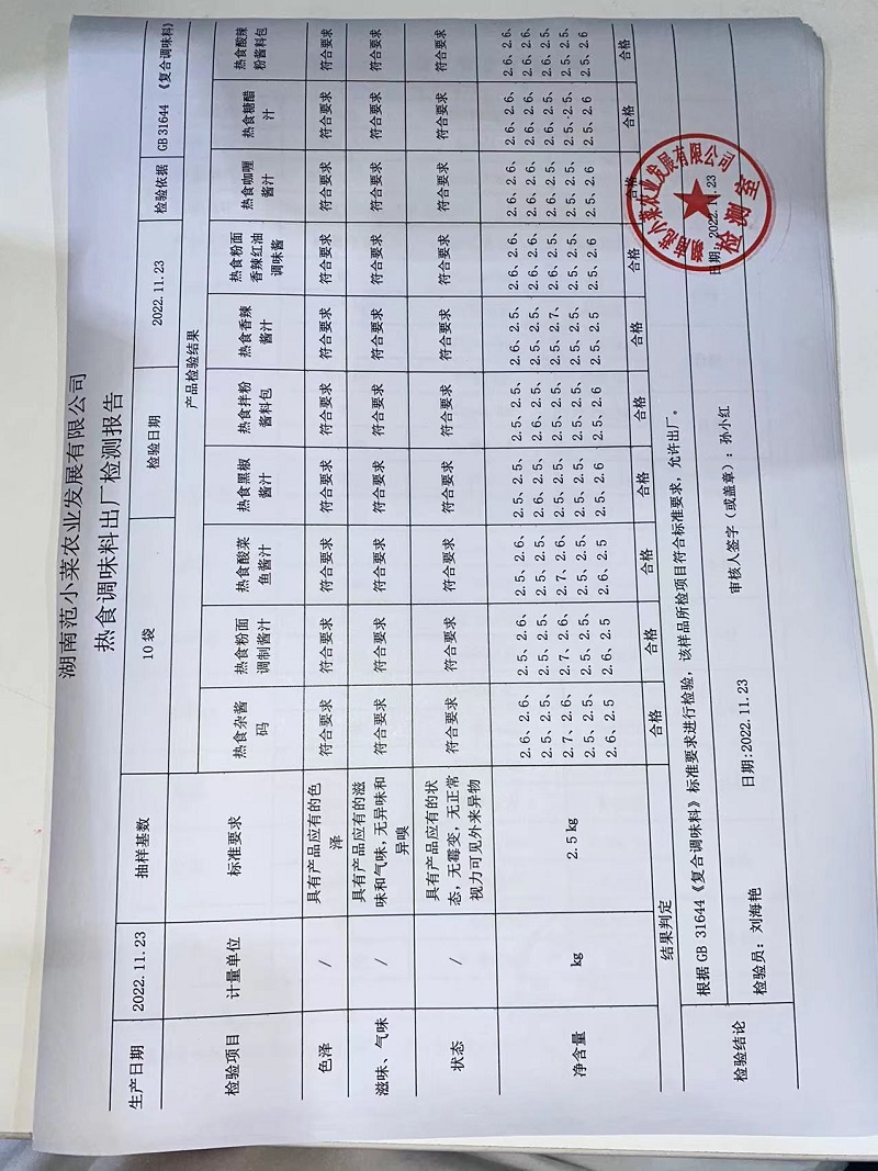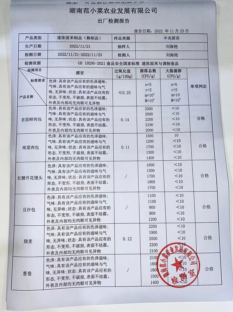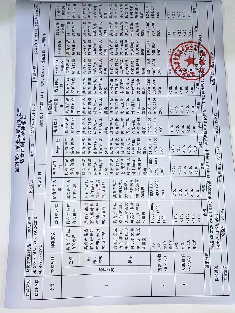 范小菜热食肉制品、调味料、意面、 一品佳中点、水产、农残2022.11.23