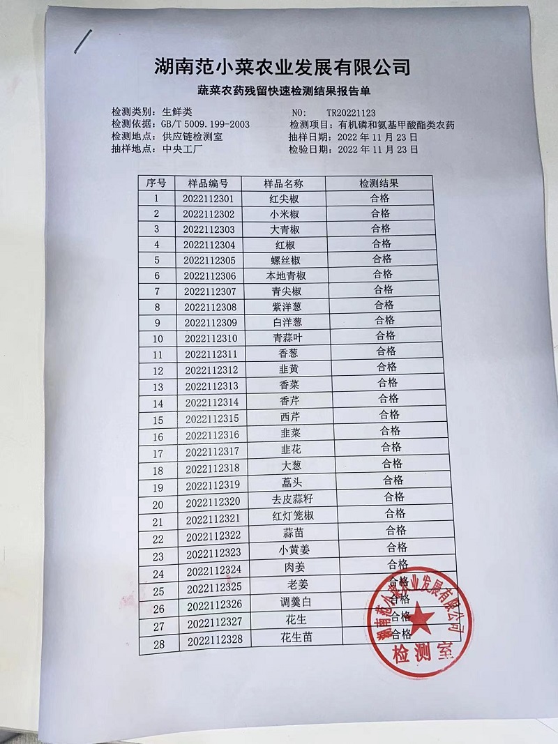 范小菜、一品佳热食肉制品、调味料、意面、 中点、水产、农残