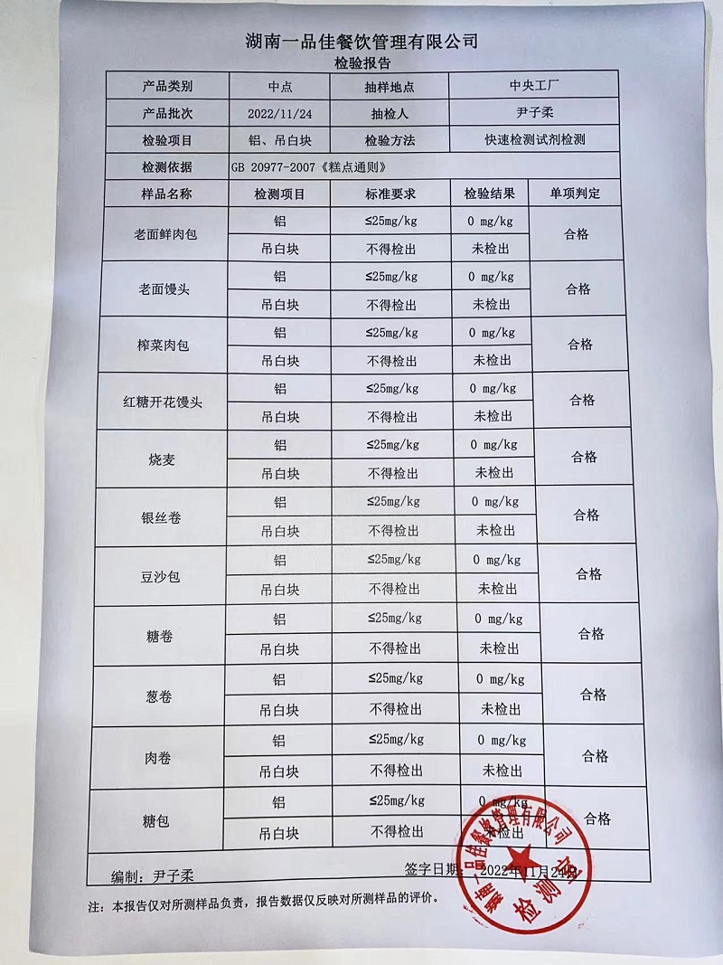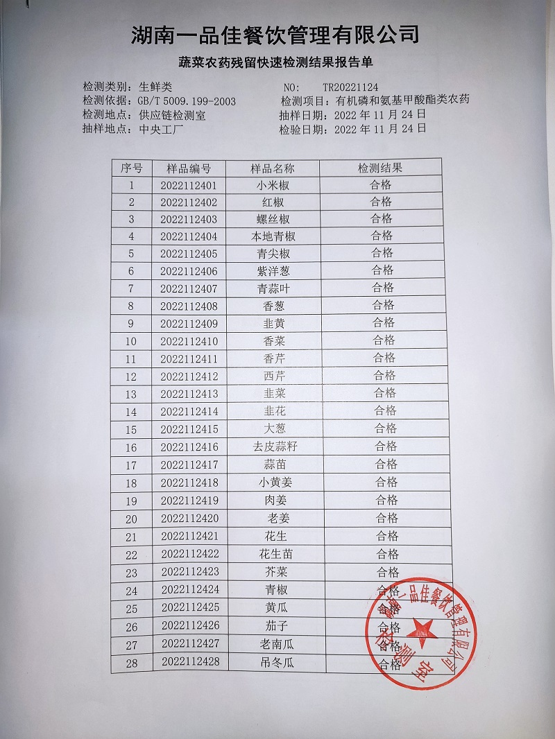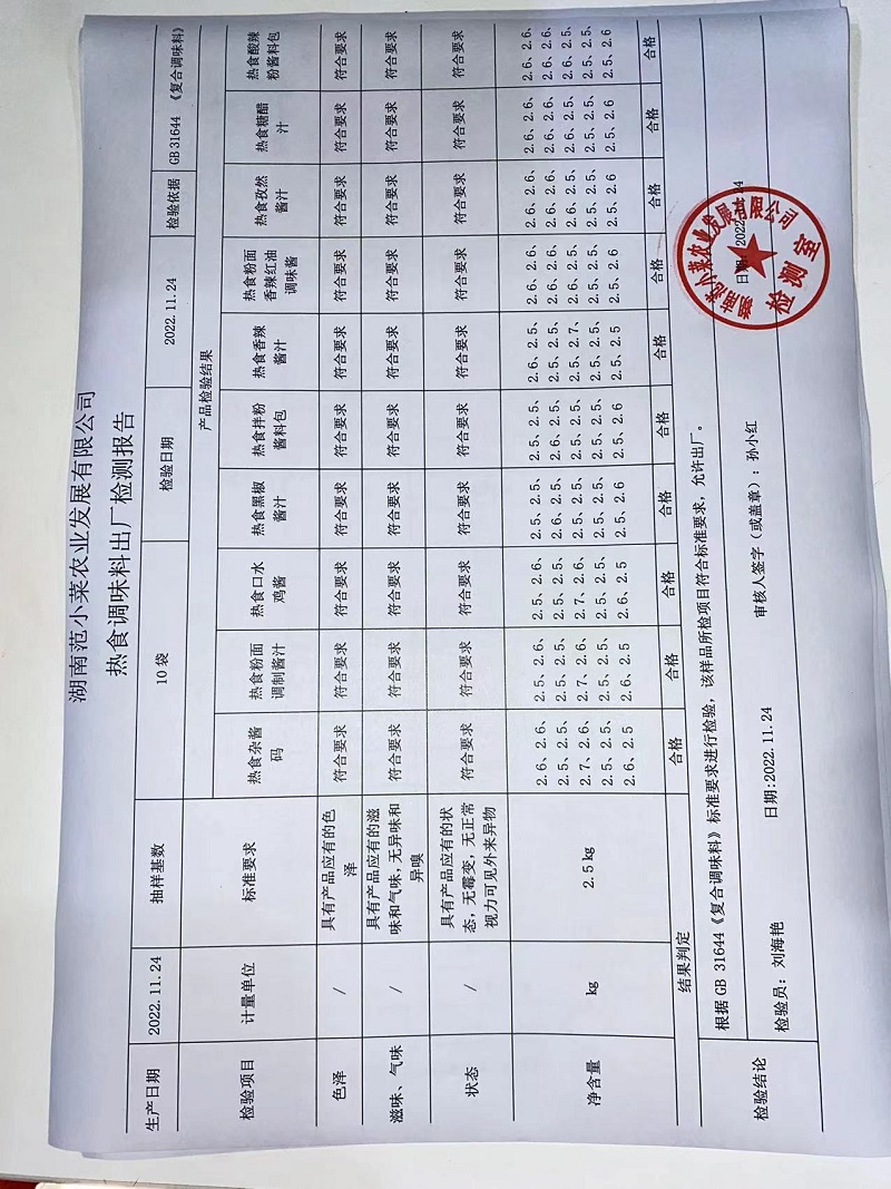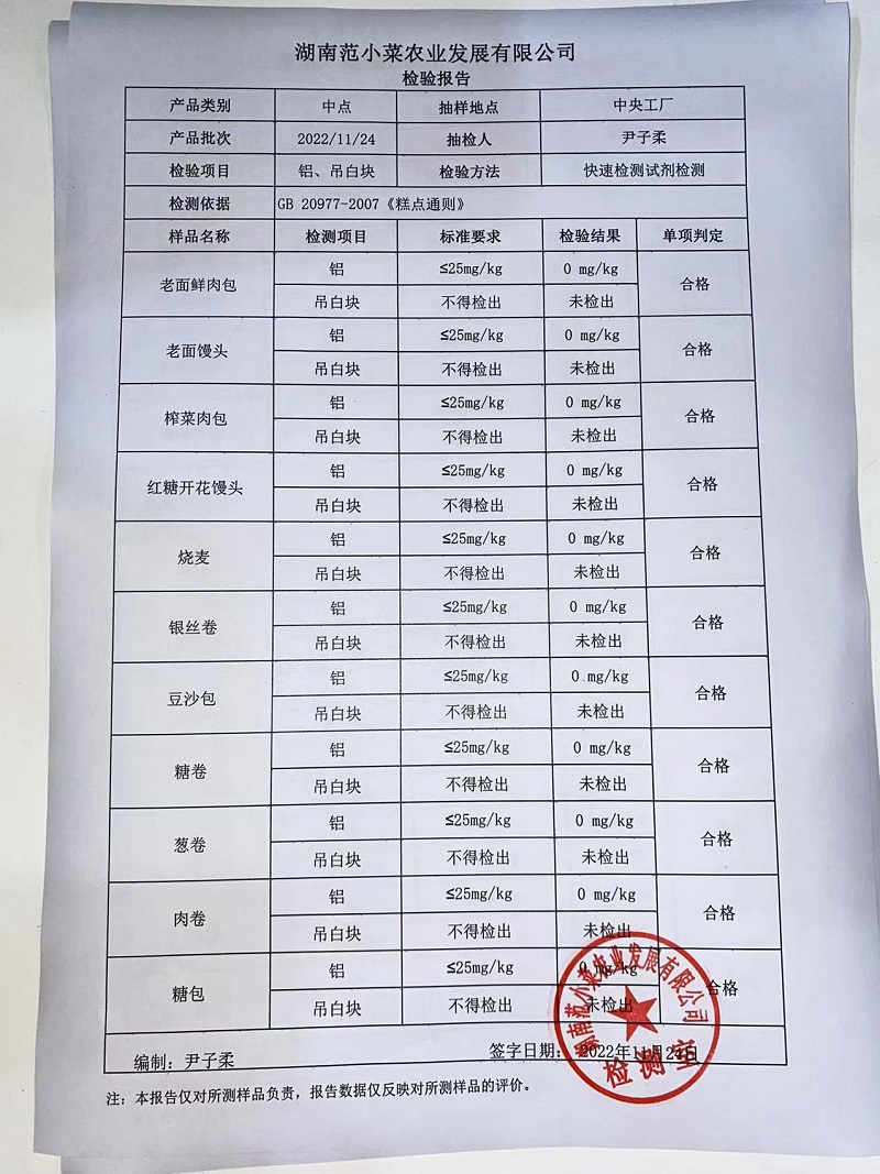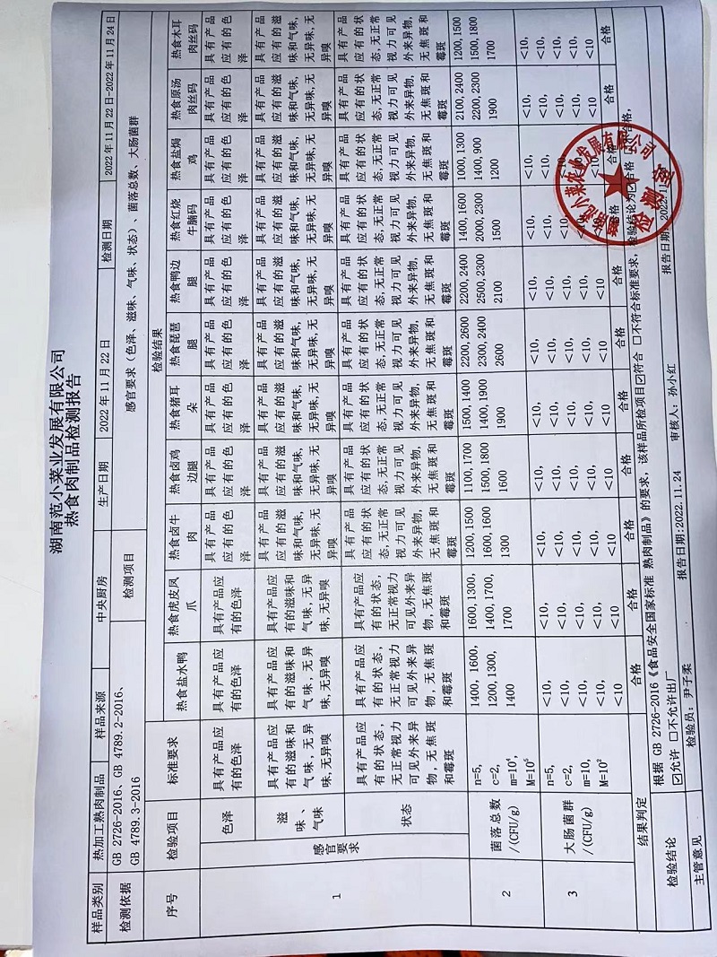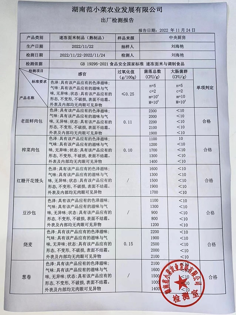 范小菜、一品佳热食肉制品、调味料、意面、 中点、水产、农残、速冻米面制品2022.11.24