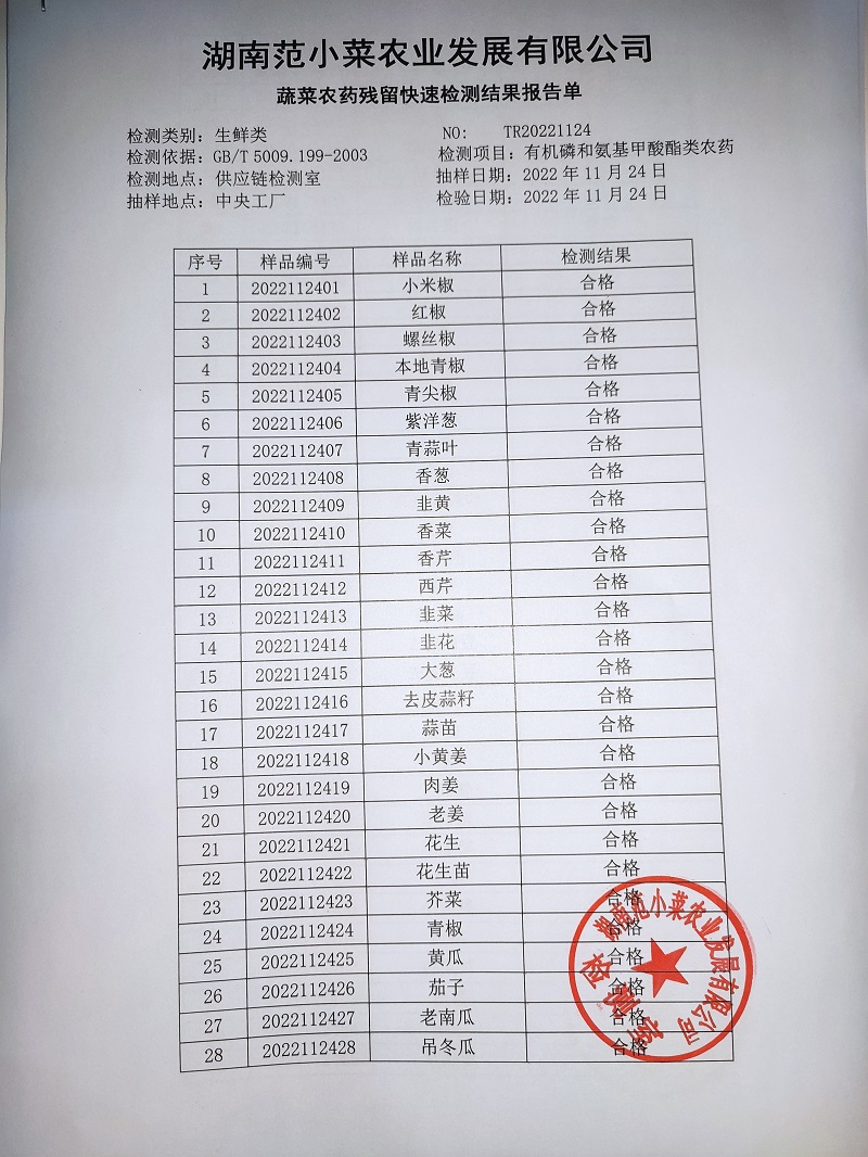 范小菜、一品佳热食肉制品、调味料、 中点、水产、农残、速冻