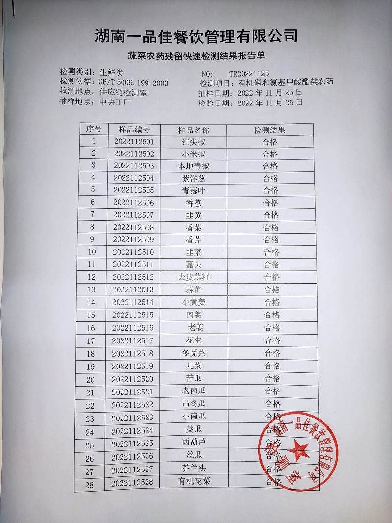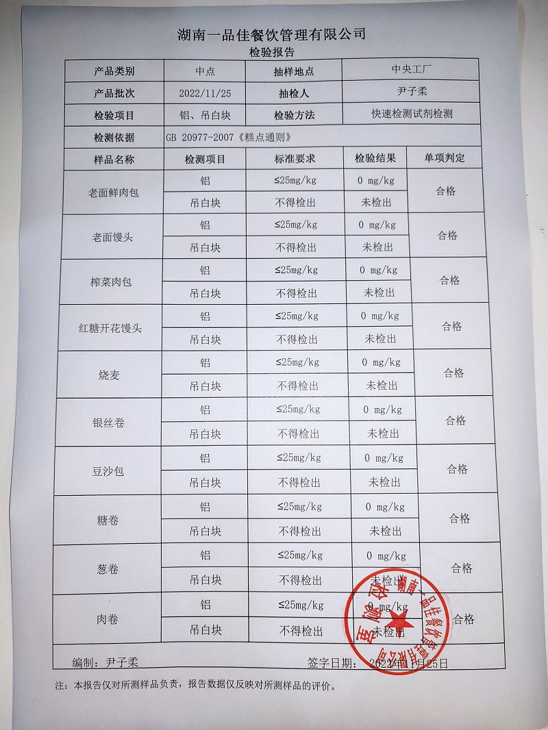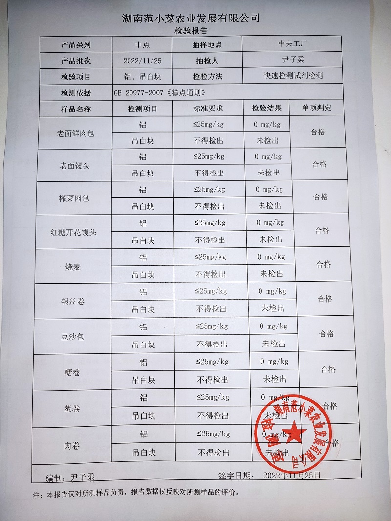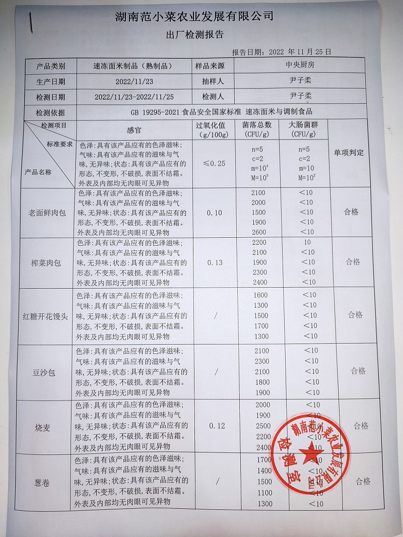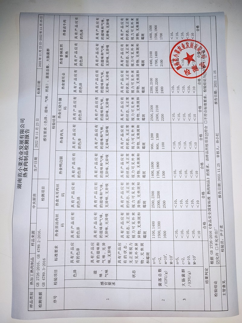 范小菜、一品佳热食肉制品、调味料、 中点、水产、农残、速冻米面制品2022.11.25