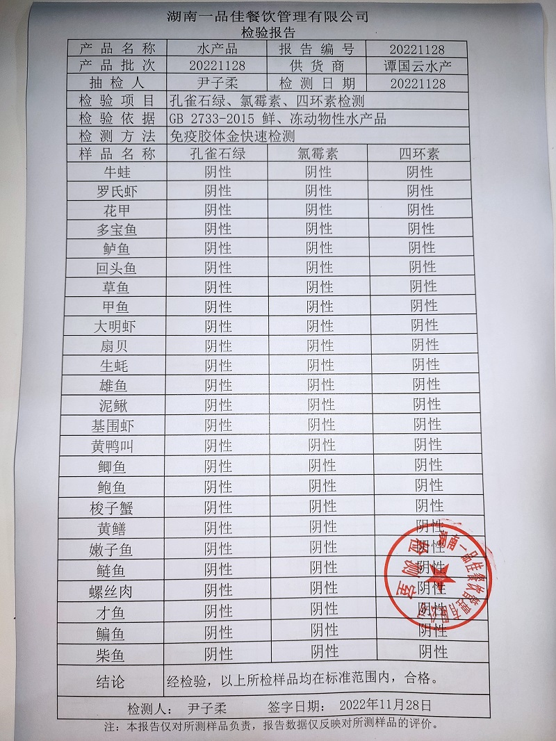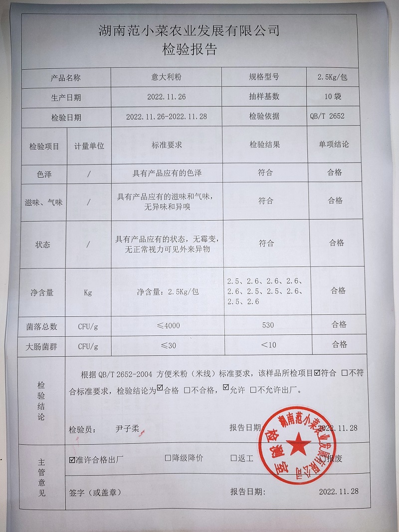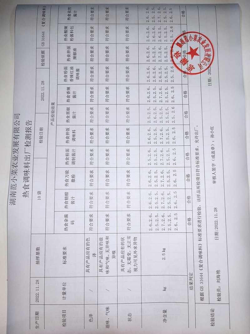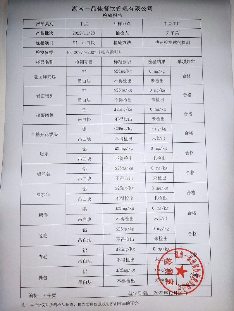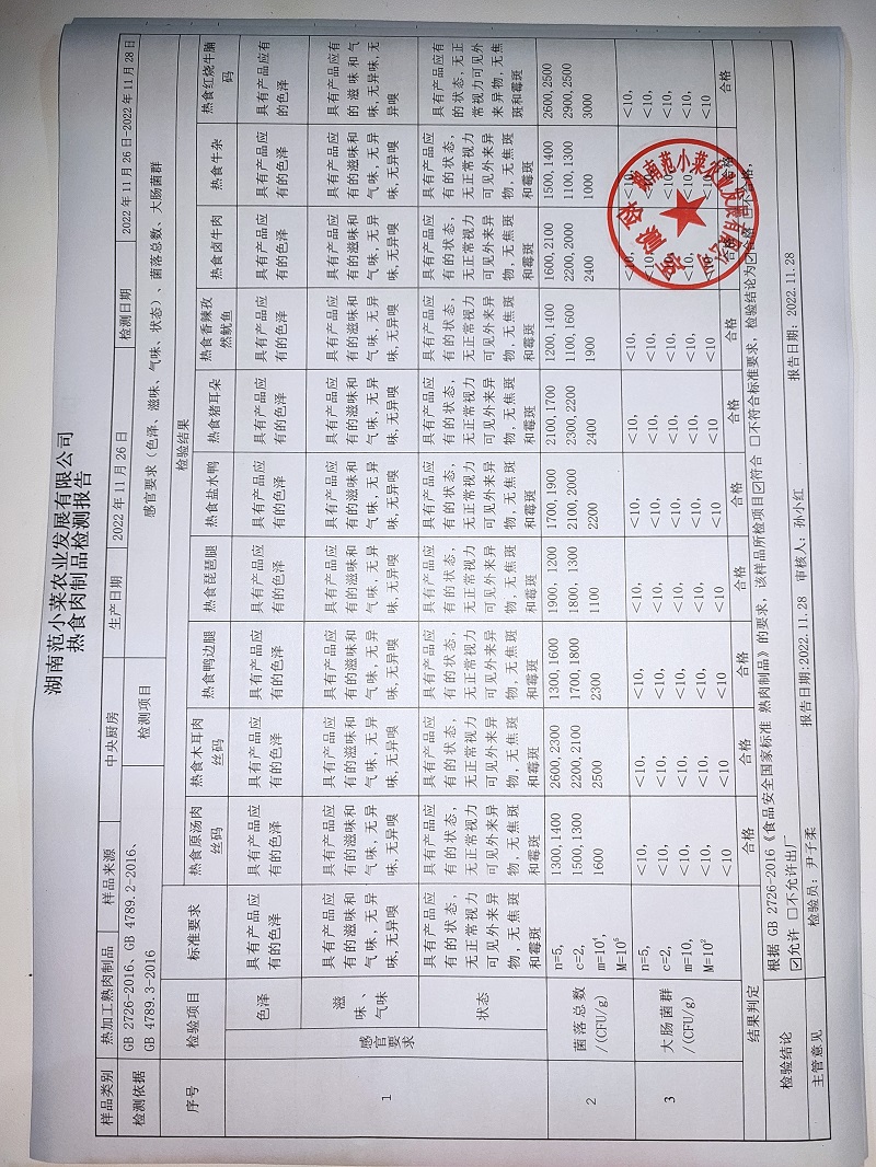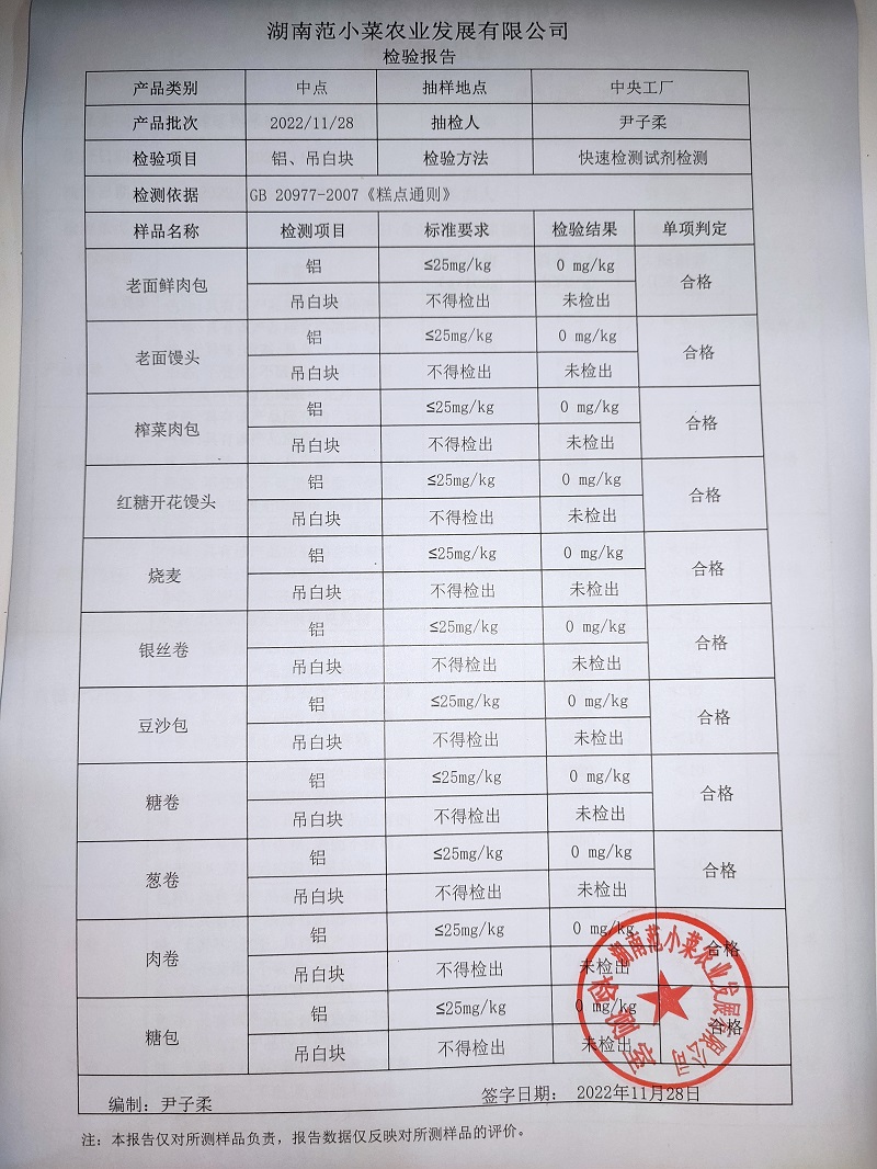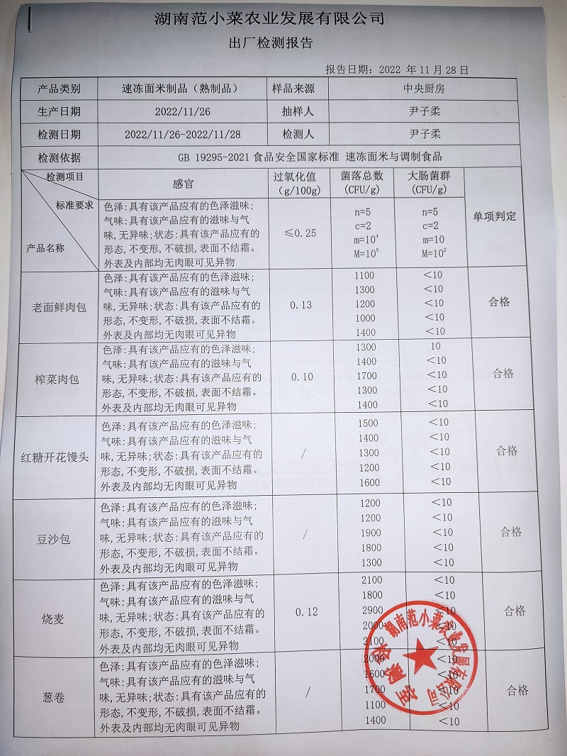 范小菜、一品佳热食肉制品、调味料、意粉、 中点、水产、农残、速冻米面制品2022.11.28