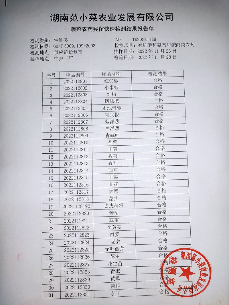 范小菜、一品佳热食肉制品、调味料、意粉、 中点、水产、农残