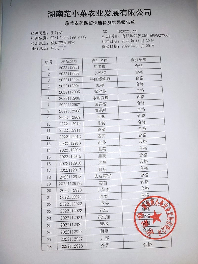 范小菜、一品佳热食肉制品、调味料、意粉、 中点、水产、农残