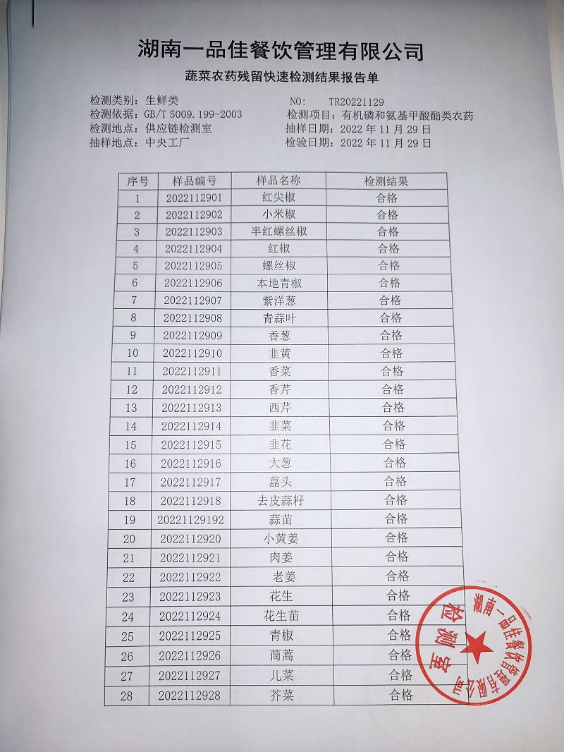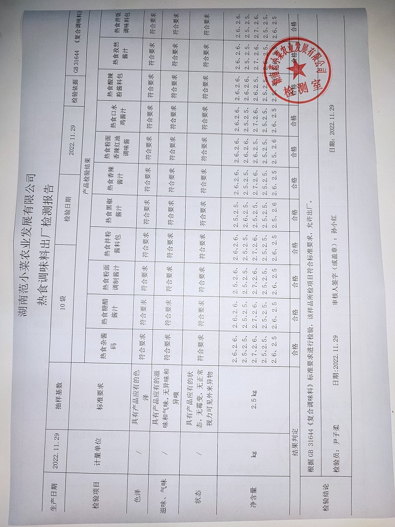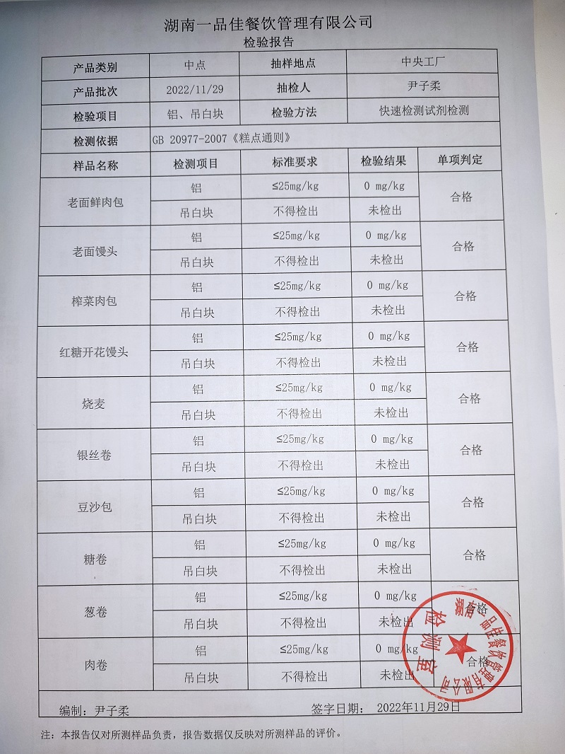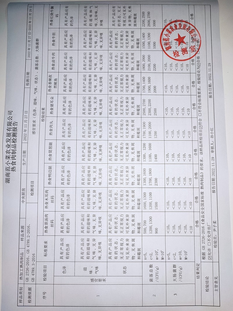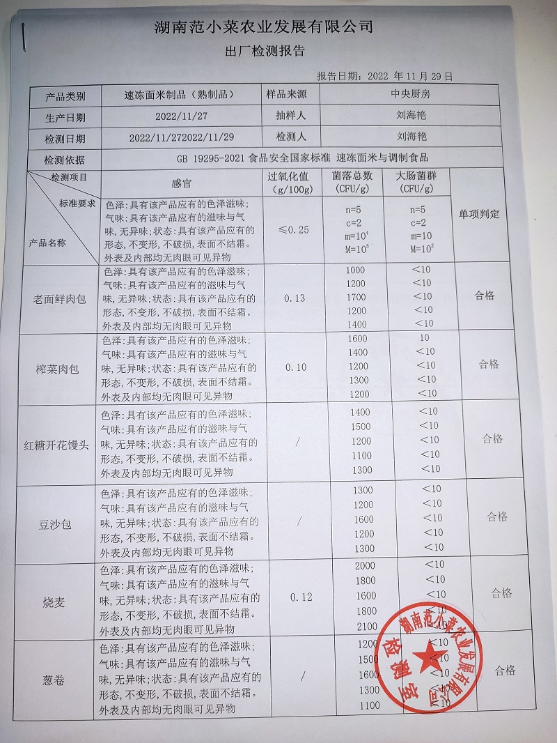 范小菜、一品佳热食肉制品、调味料、意粉、 中点、水产、农残、速冻米面制品2022.11.29