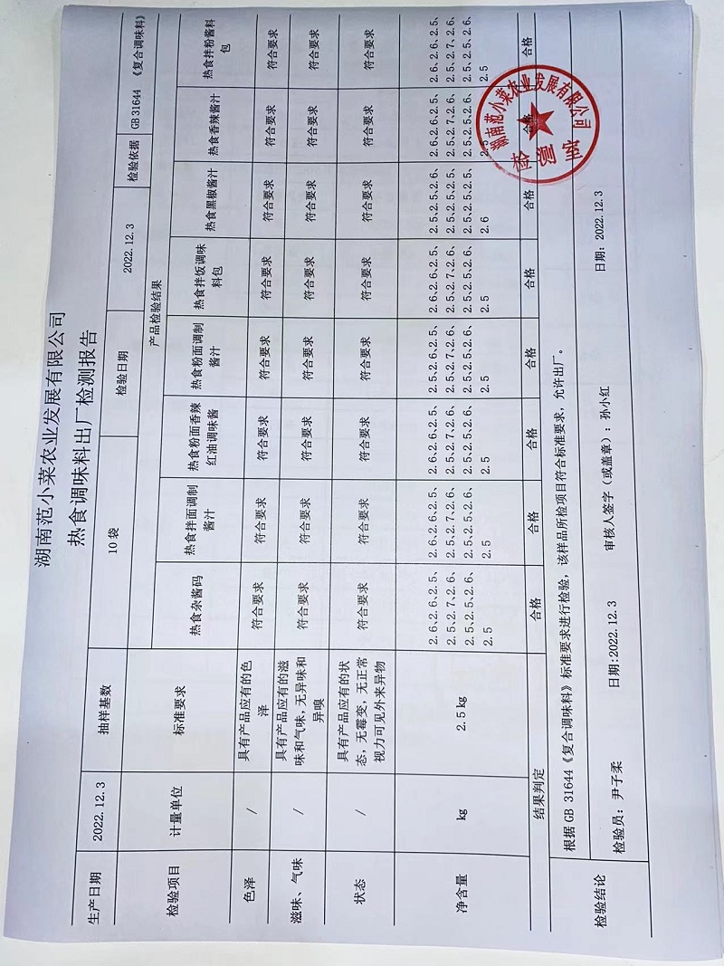 范小菜热食肉制品、调味料、 一品佳中点、水产、农残、速冻米