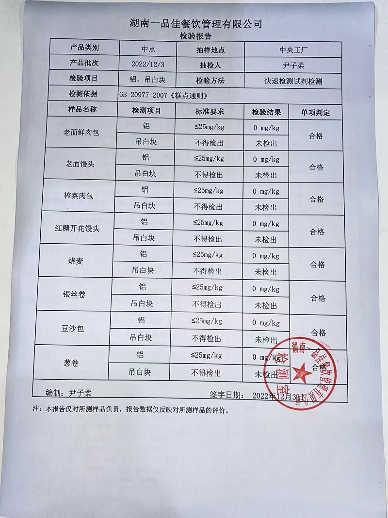 范小菜热食肉制品、调味料、意面 一品佳中点、水产、农残、速