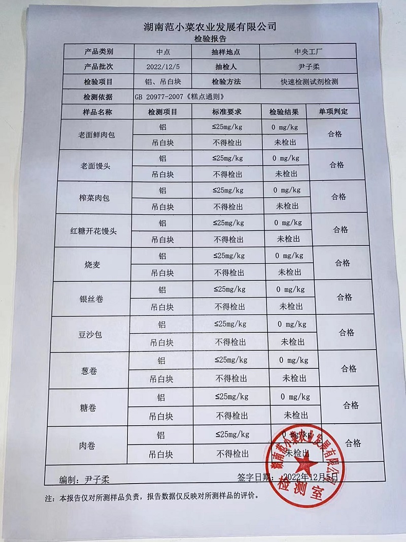 范小菜热食肉制品、调味料、意面 一品佳中点、水产、农残、速
