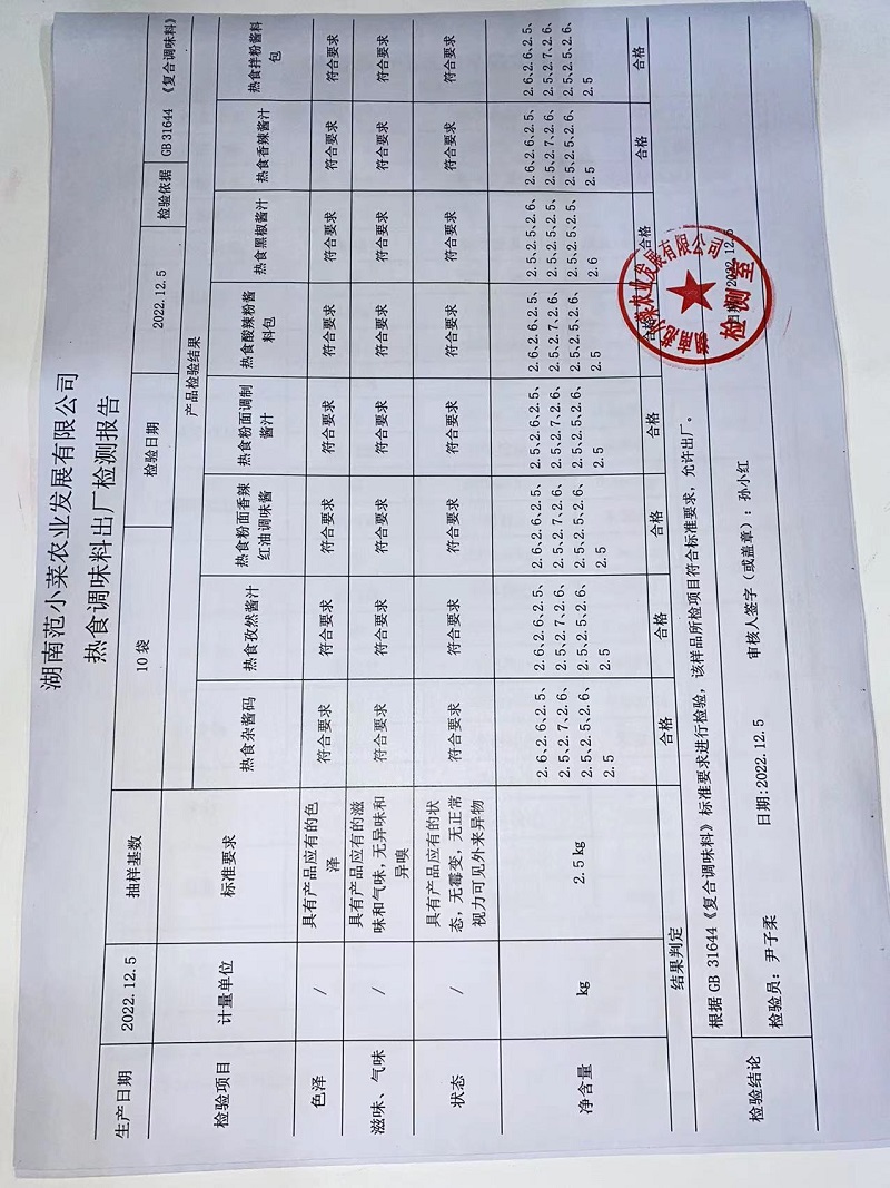 范小菜热食肉制品、调味料、 一品佳、范小菜中点、水产、农残
