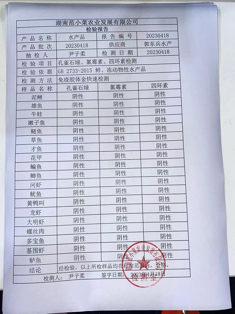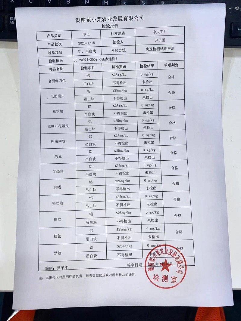 范小菜热食肉制品、调味料、 一品佳、范小菜中点、水产、农残、速冻米面制品2023.4.18