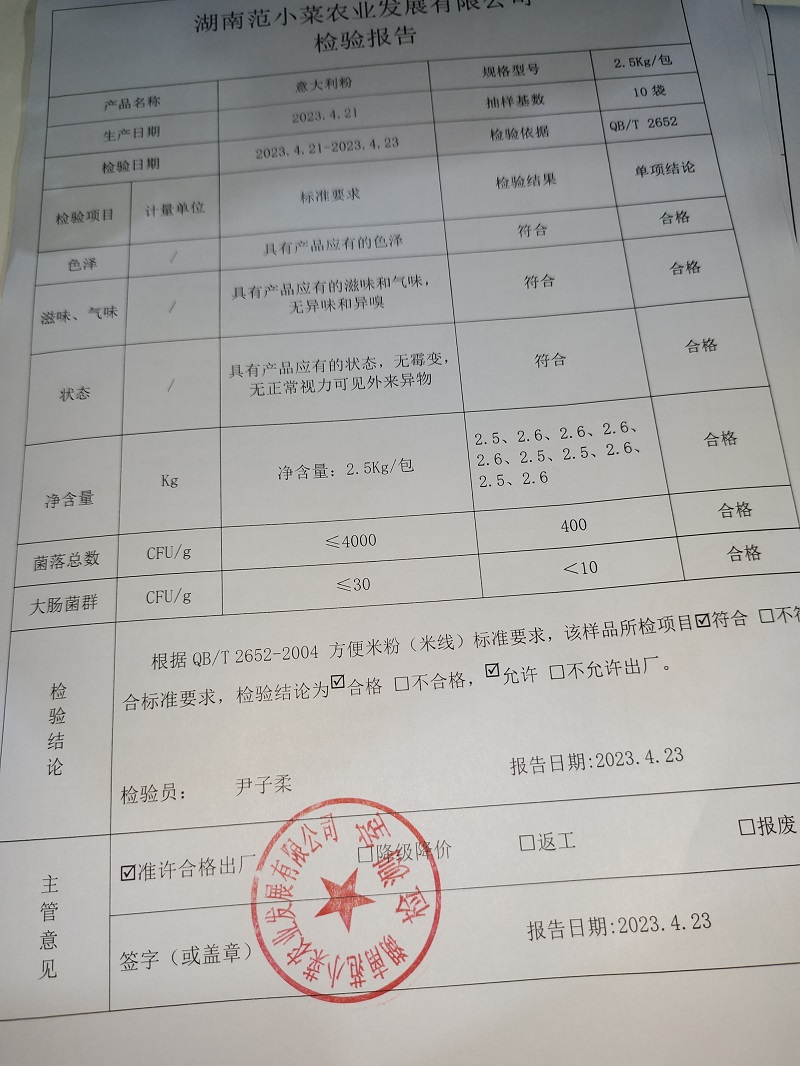 范小菜、一品佳热食肉制品、意粉、调味料、 中点、水产、农残