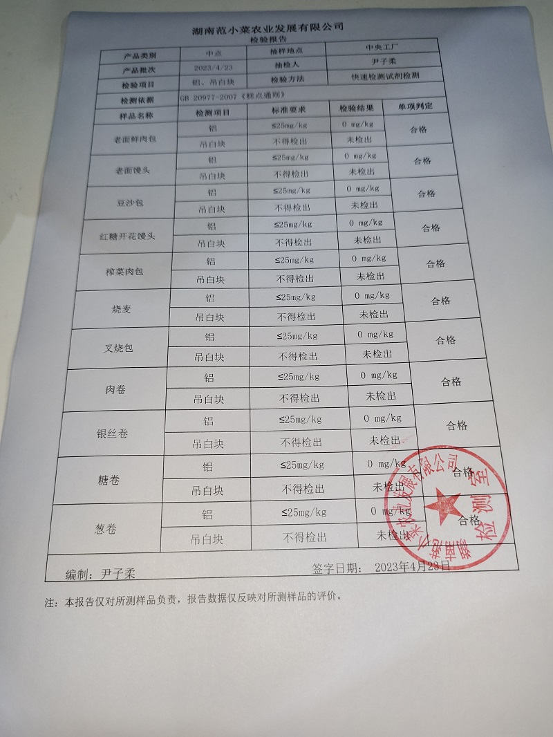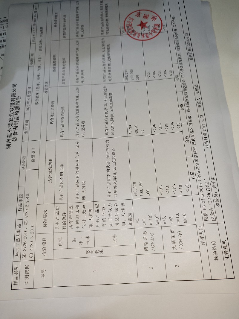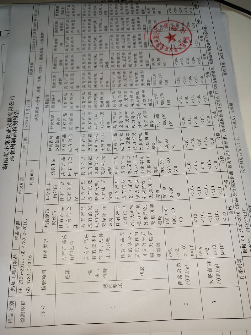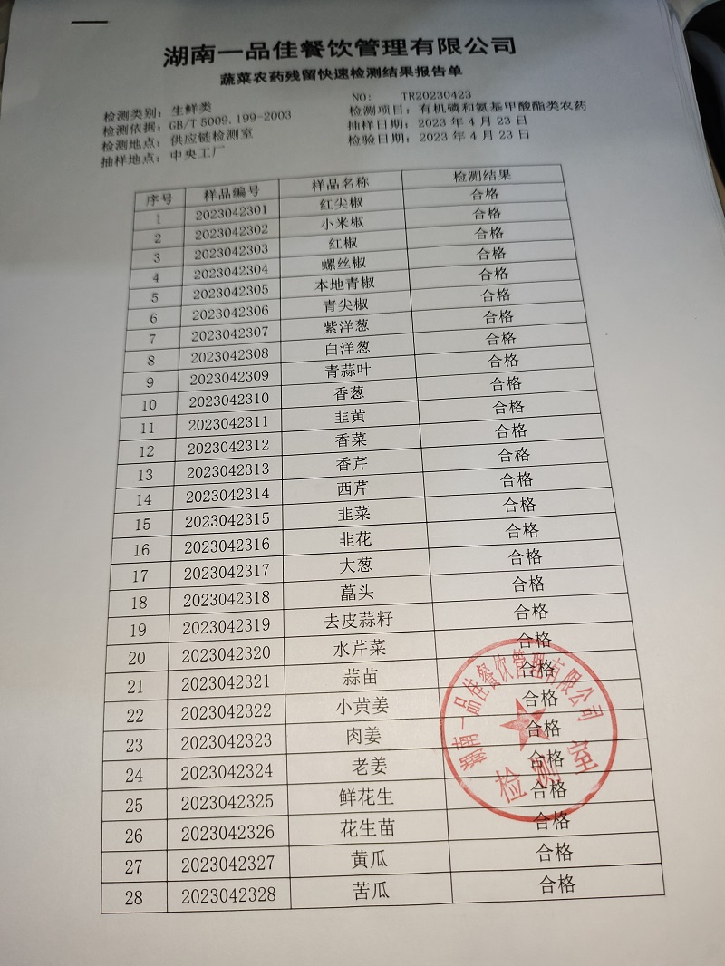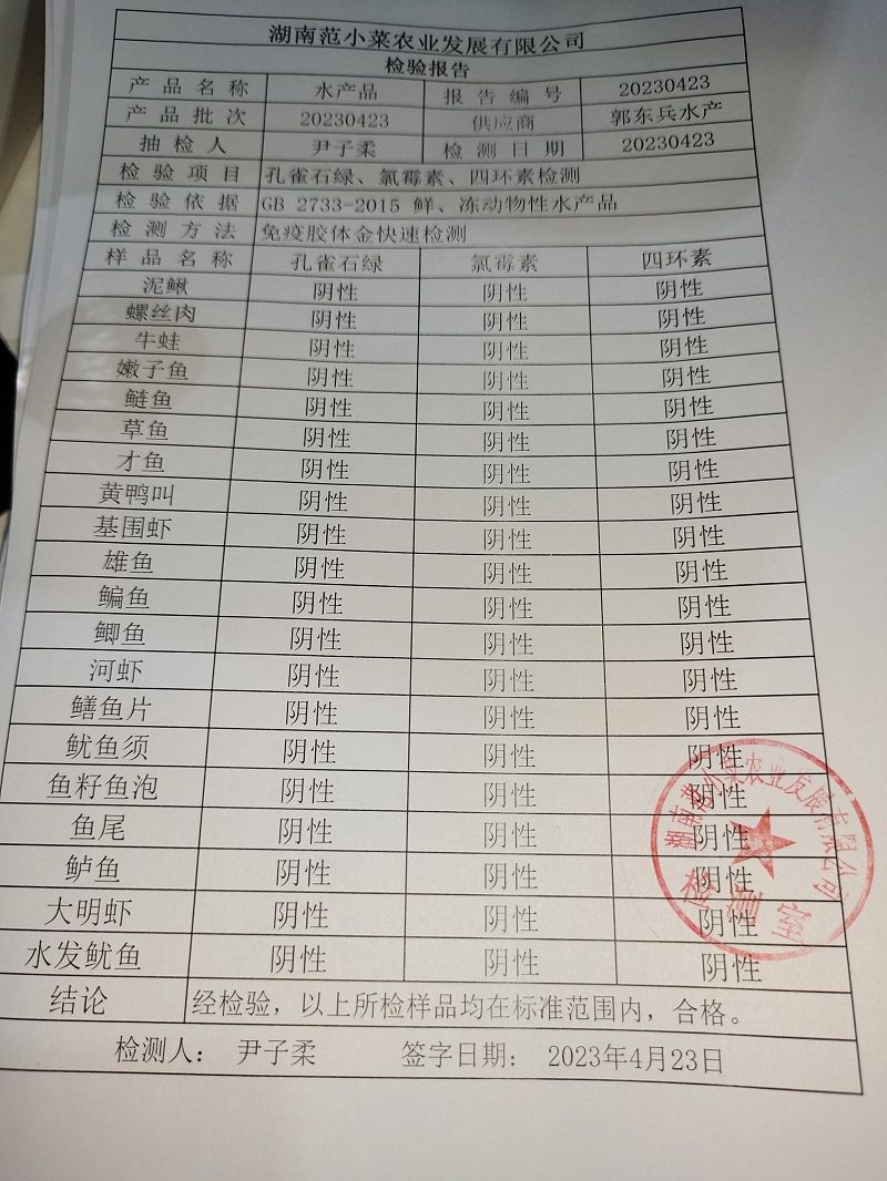 范小菜热食肉制品、调味料、 一品佳中点、水产、农残2023.4.23