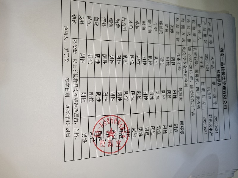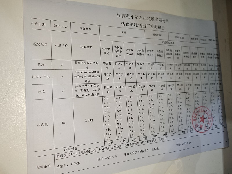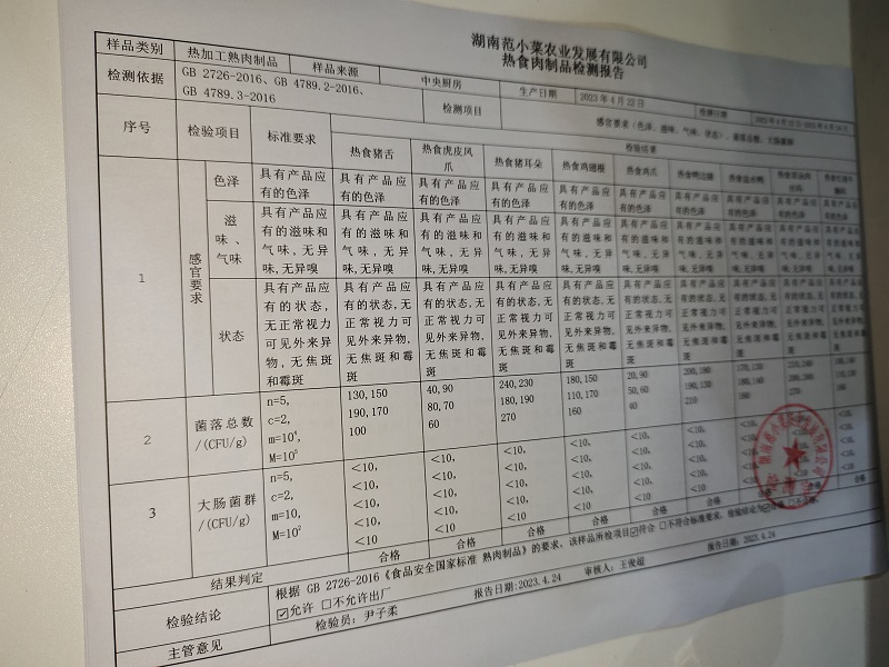 范小菜热食肉制品、调味料、 一品佳中点、水产、农残2023.4.24