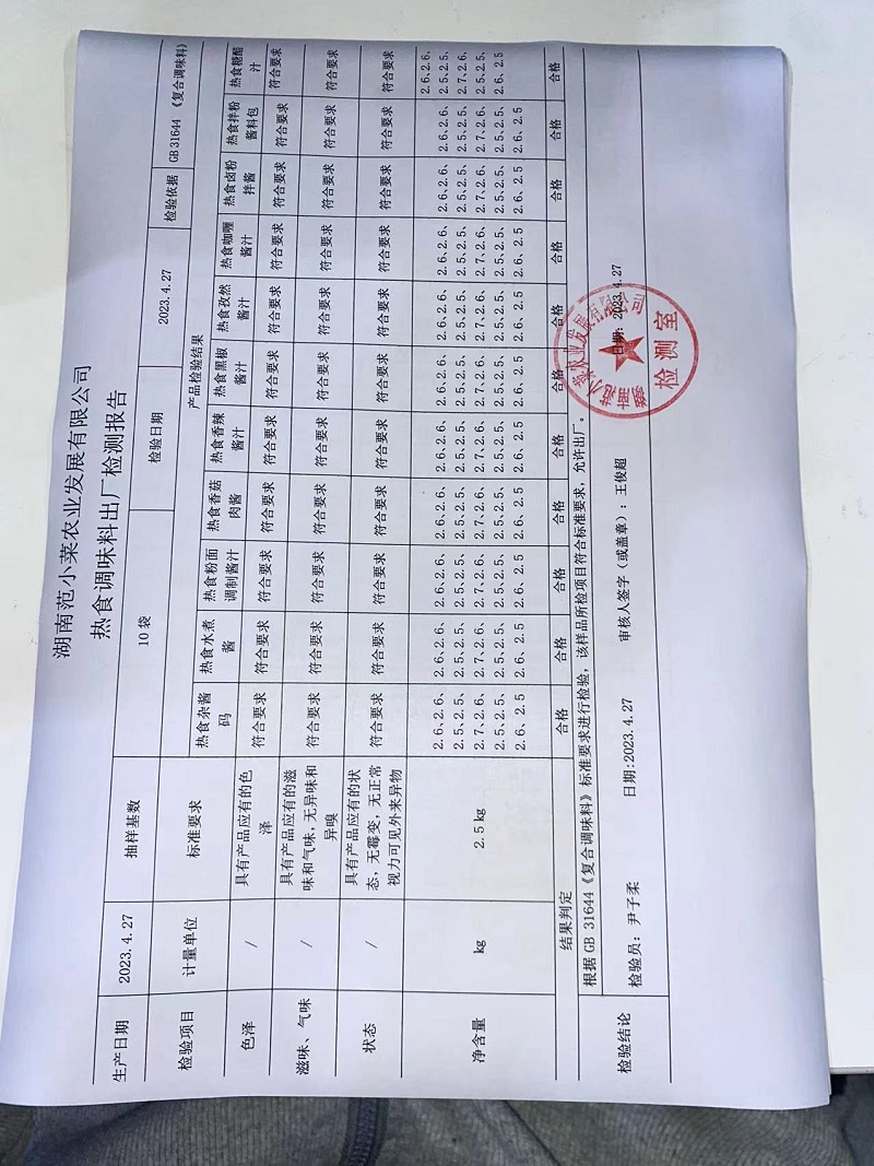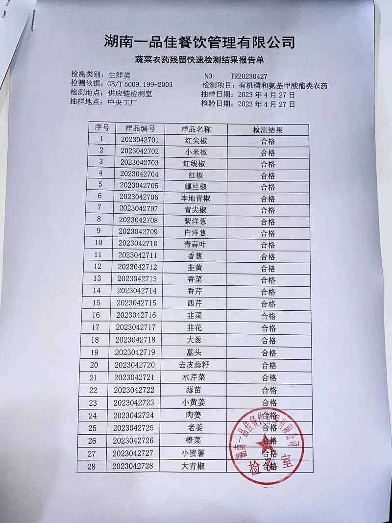 范小菜热食肉制品、调味料、 一品佳中点、水产、农残2023