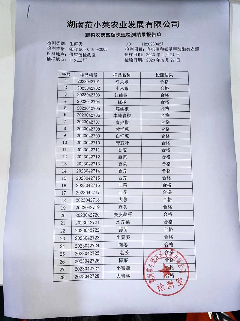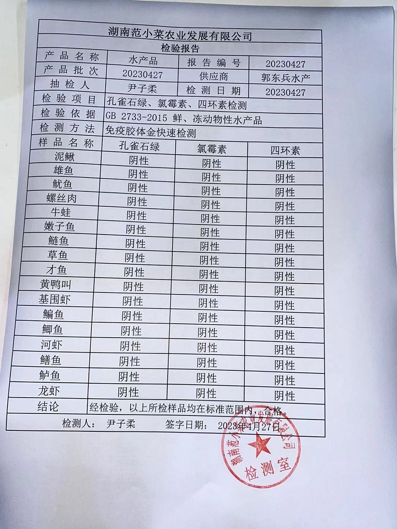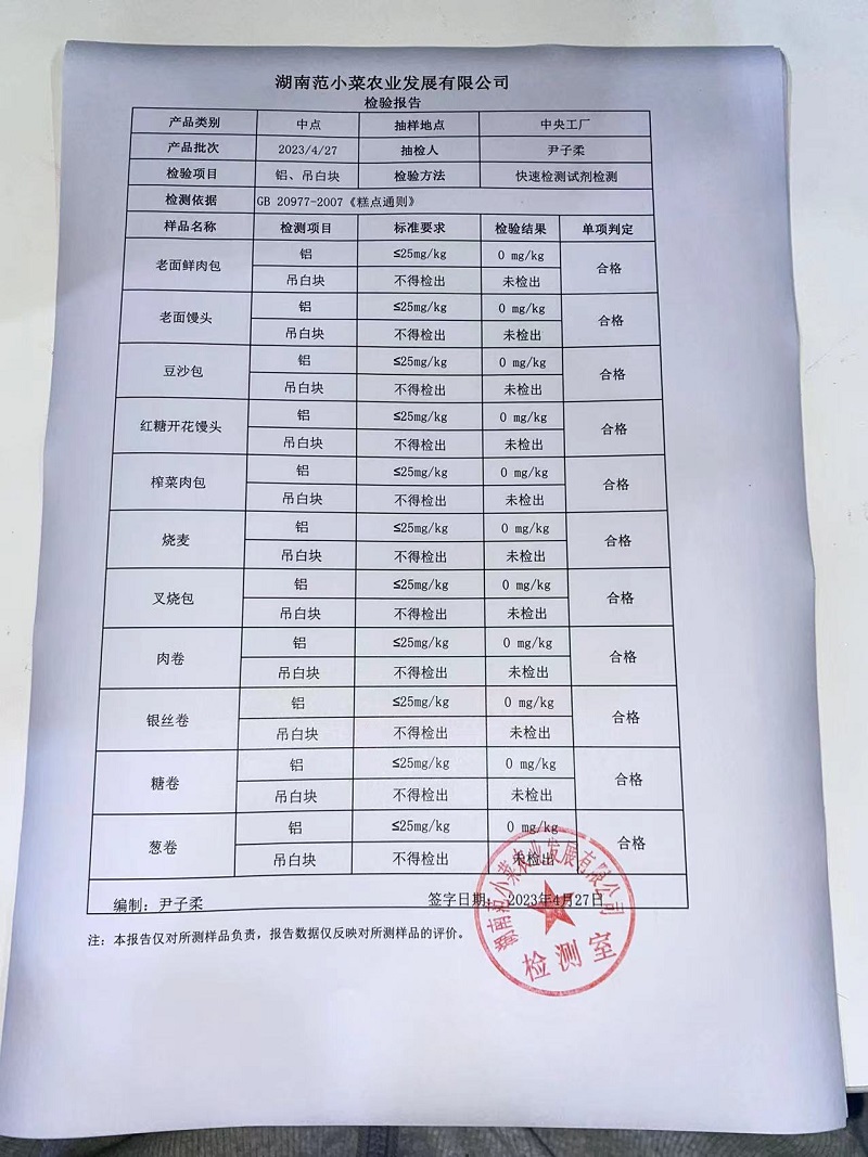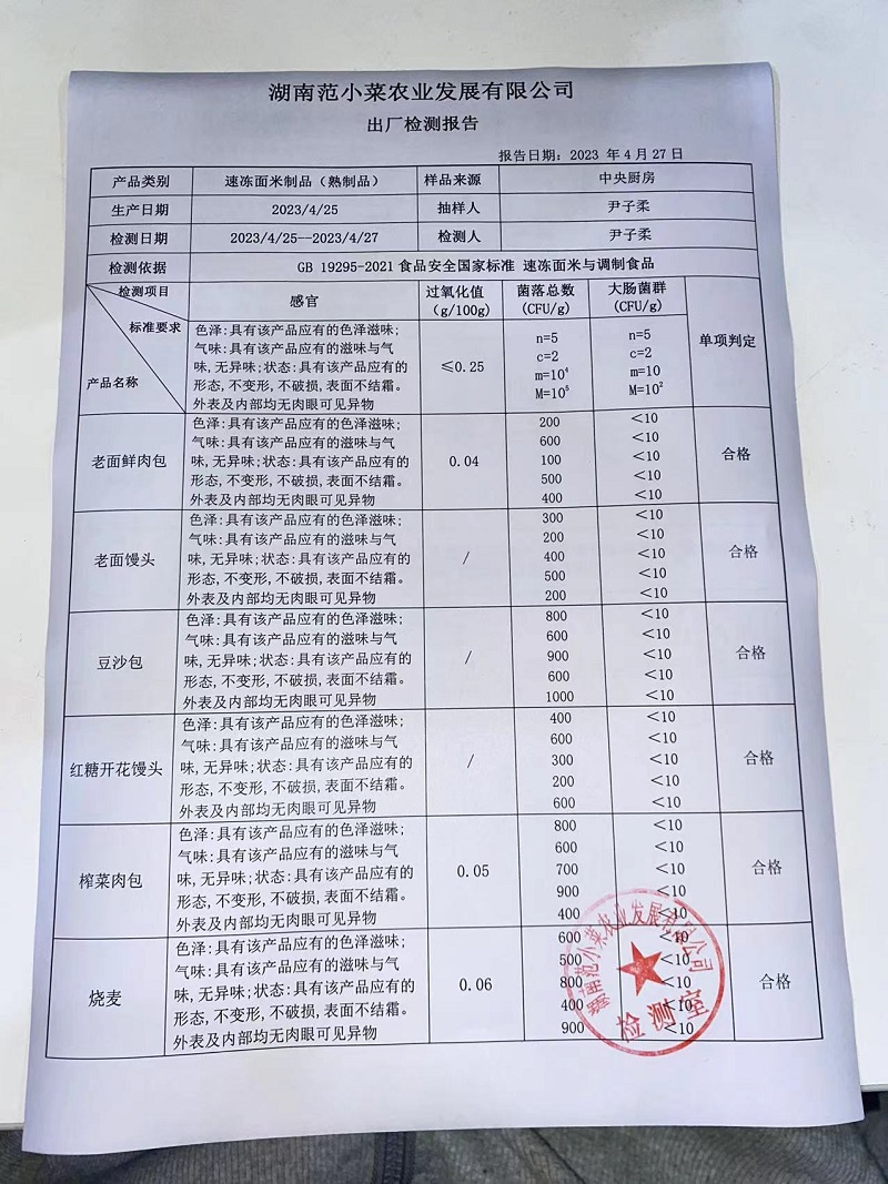 范小菜热食肉制品、调味料、 一品佳、范小菜中点、水产、农残、速冻米面制品2023.4.27