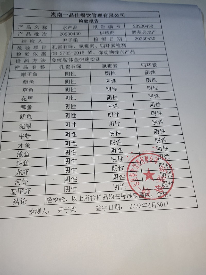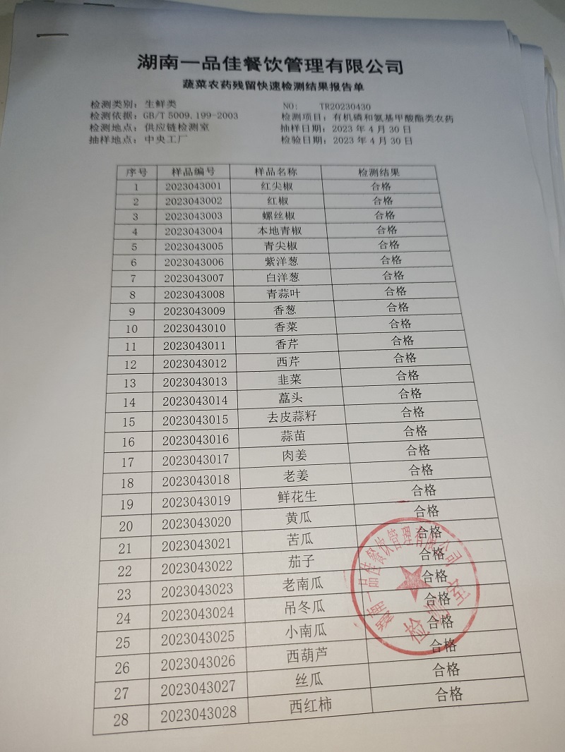 范小菜热食肉制品、调味料、 一品佳中点、水产、农残2023.4.30